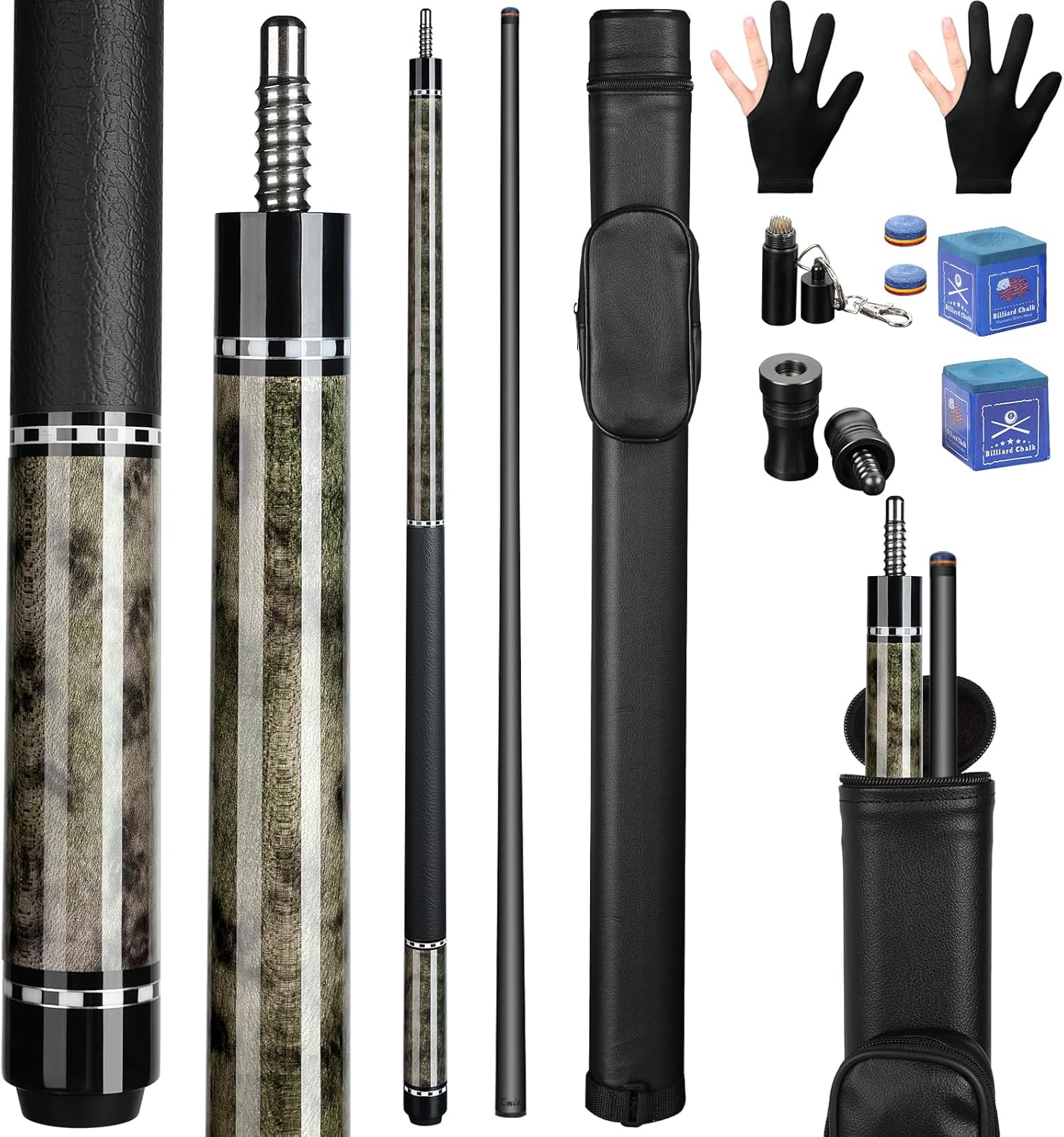 | Included Components | Durable joint protector*1 pcs, useful pool cue tip tool Aerator *1 pcs, Low deflection carbon fiber pool cue*1 pcs, pool cue chalk*2 pcs, cue tip*2 pcs, Sleek finger glove*2 pcs and Premium PU leather cue case*1 pcs |