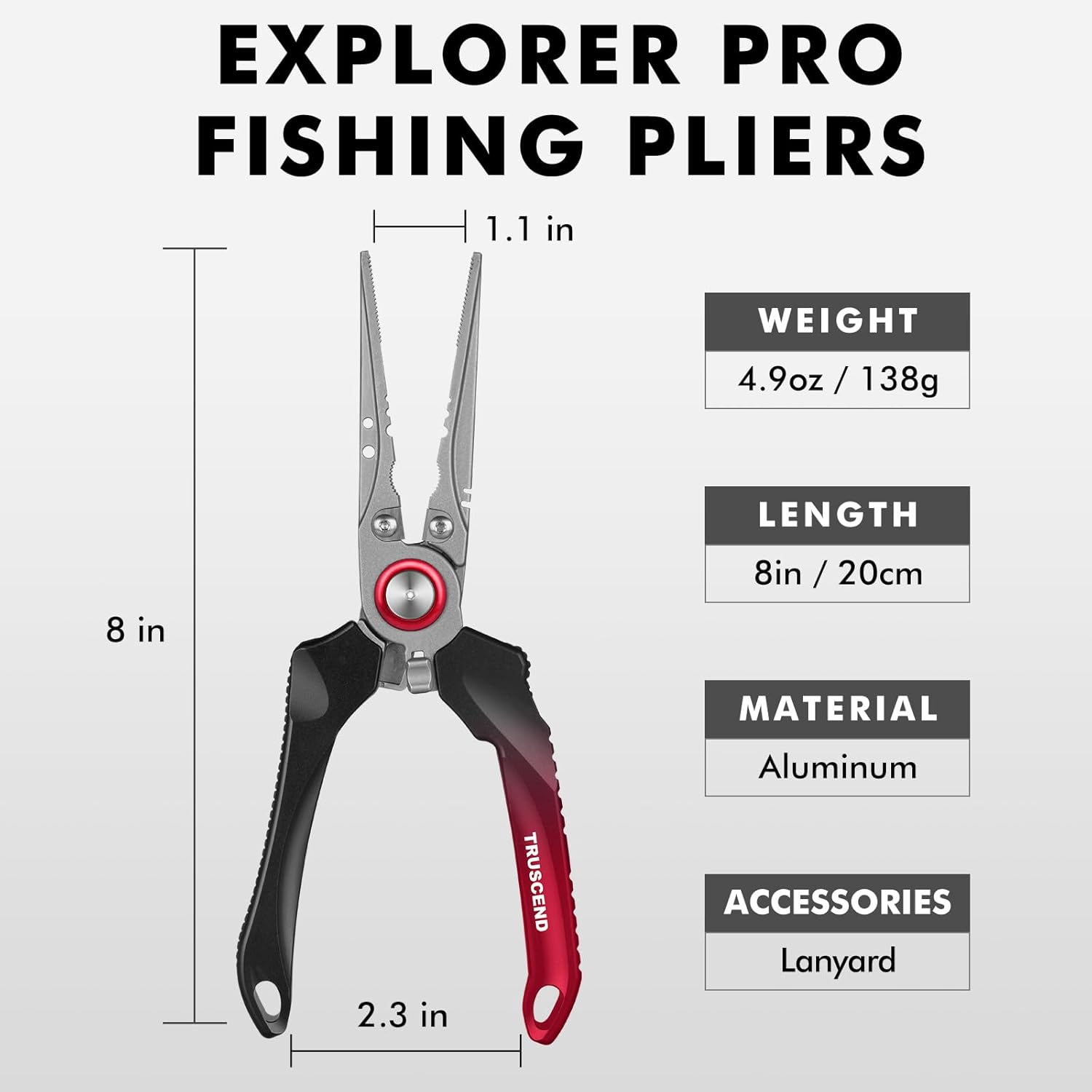 BEST MATCHED FISHING GEAR SET - Multi-function aluminum fishing pliers are equipped with light handles, function of split ring pliers, fish hook remover tool, fishing line cutter and tuning baits. More importantly, unlike ordinary spring-loaded pliers, this fishing stuff fishing tackle is designed with a unique lock switch to keep the it open and close freely with just one hand. fishing tools set delivers cutting edge performance that you can rely on for the coming yearsNEVER RUST AVIATION ALUMINUM - TRUSCEND exclusive upgraded design fishing pliers, using aircraft aluminum precision casting, delicate Teflon coating which offers superior protection against corrosion wear and tough environments. Service life far longer than 80% of fish pliers on the market. Ready for the harshest saltwater and freshwater environments that anglers never have to worry about rust or grime building up and ruining your fishing equipmentEXCLUSIVE UPGRADE HANDLE DESIGN - An exclusive upgrade Ergonomic handle designed by TRUSCEND offer a perfect handle space to harness the strongest parts of the hand and reduce fatigue. The cool ergonomic design really helps in gripping the pliers, feeling comfortable and light in the hand. Giving you a secured grip in tough conditions. Many fishermen prefer these fishing supplies without the extra rubber/plastic on the handles as it usually hardens and doesn’t offer much grip over timeGIFTS FOR FISHERMAN - Add ultralight Saltwater Aluminum Fishing Pliers Gear to your fishing tackle box. Make your hook removal much easier. the fishing pliers kit are perfect fishing gifts for men, dad, anglers, father, son, husband on Birthday, Anniversary, Thanksgiving, Christmas Etc