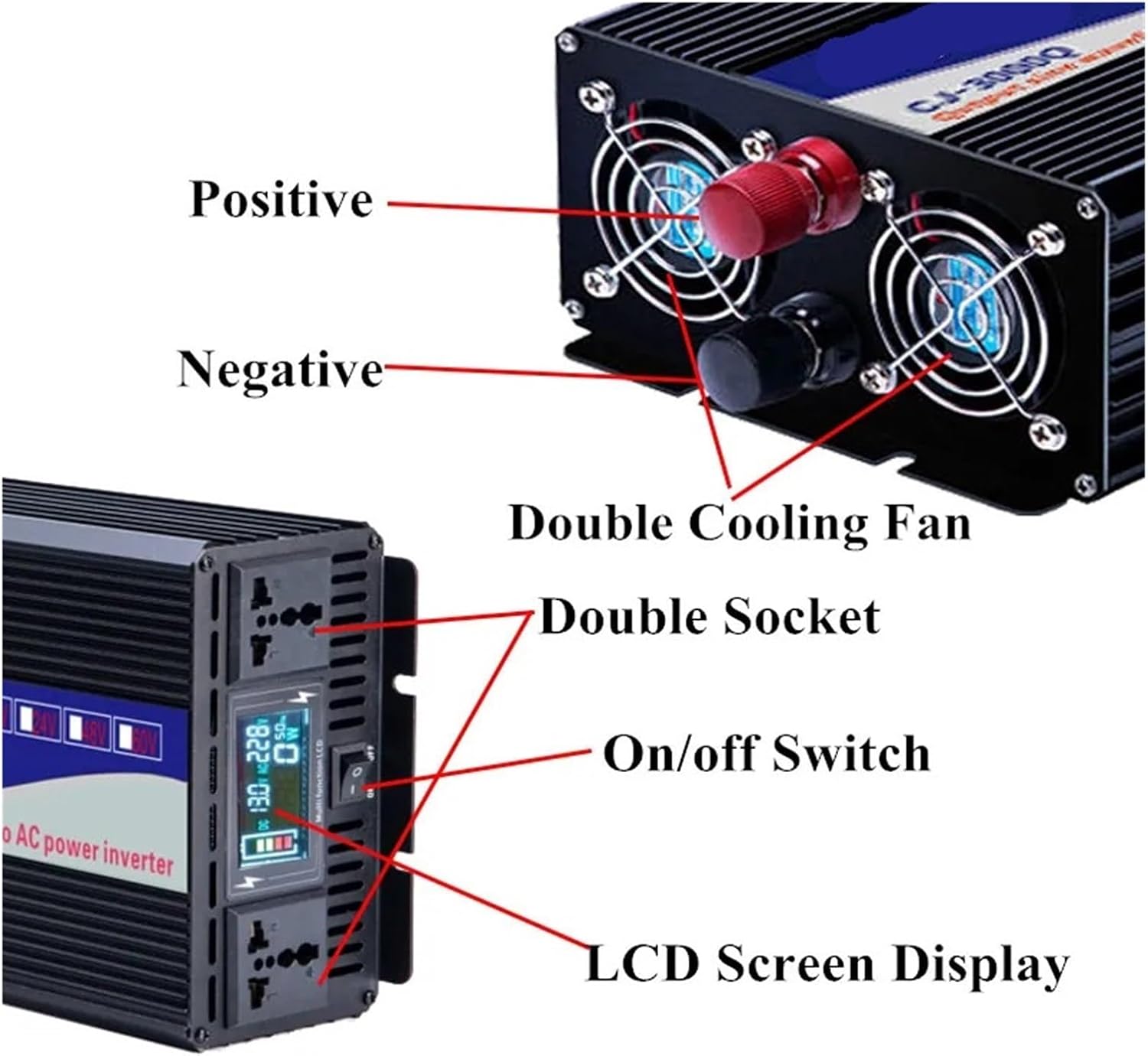 InvertersInverterSpecificationPeak Output Power : 5000W/4000W/3000WRated Power :2500W/2000W/1500WInput Votage: DC 12V,24V,48V,60VOutput voltage: AC 220V,230V,240V/ 50Hz ,60HZ