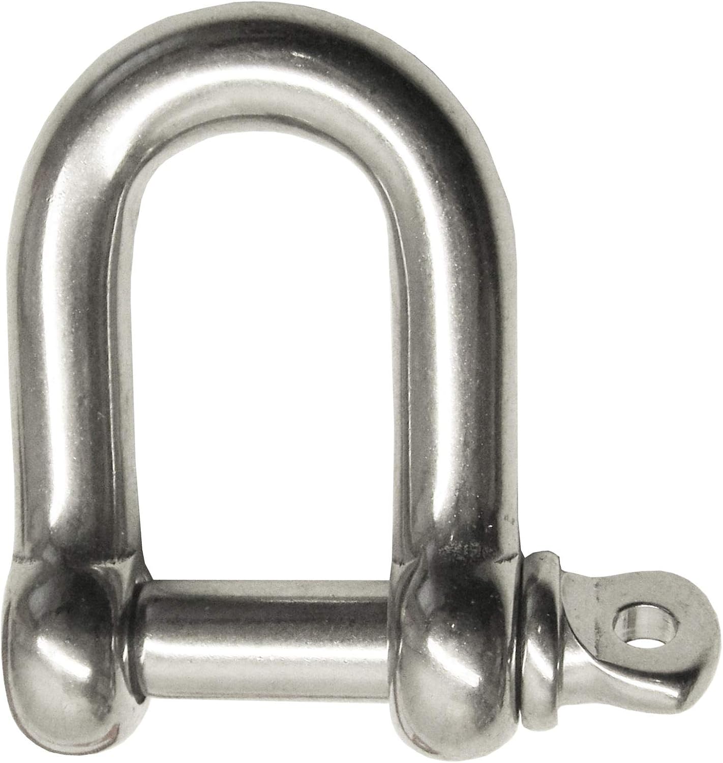 A pack of ten top quality commercial shape dee shackles. Made from marine 316 (AISI graded) Stainless Steel. 5mm Shackle thickness and Shackle Pin. 10mm internal width. 18mm internal shackle length.