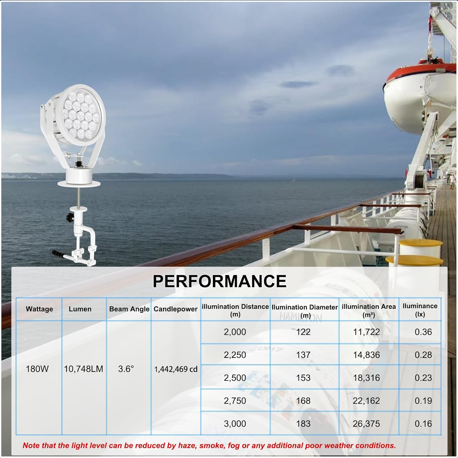 | Included Components | 180W Marine Search Ligt Fixture, Lever (Adjustment column operable within the wheelhouse) |