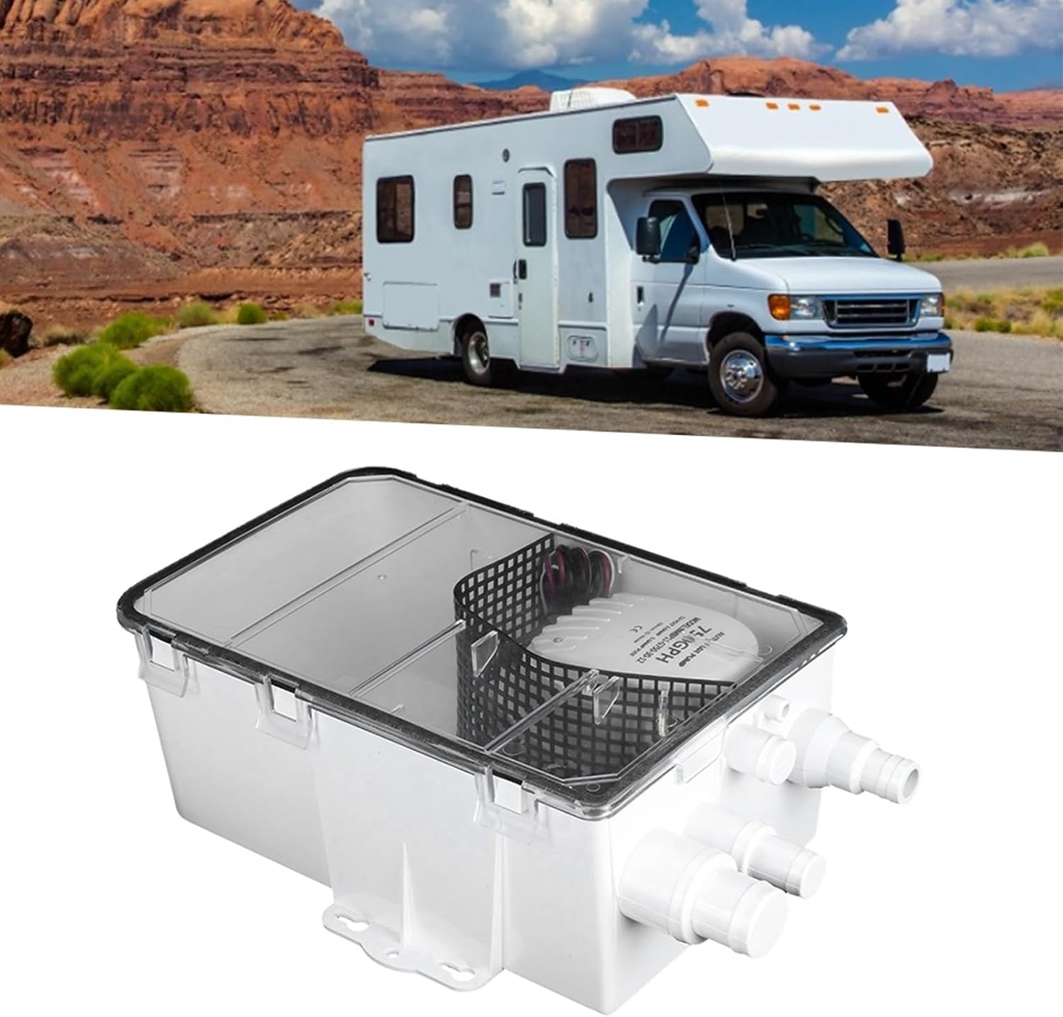 [Automatic Water Level Control] The shower sump pump features a built-in switch that automatically controls the pump based on water levels eliminating the need for an external float switch. this ensures hassle-free operation and consistent performance in marine environments. [Safe & Reliable Operation] With an ignition protection function this pump eliminates safety concerns during startup. its robust construction and reliable performance make it ideal for marine showers and bilge drainage systems. [Versatile Connectivity] This shower sump pump system comes with multiple sizes of port connectors making it adaptable to various plumbing setups. its user-friendly design ensures quick installation and seamless operation in boats and rvs. [Prevents Backflow & Protects] The built-in check valve effectively prevents dirty water from flowing back into the bathtub or cabin maintaining and preventing . this feature is essential for marine and rv applications. [Easy Maintenance & Cleaning] Equipped with a transparent cover featuring a gasket seal and a removable mesh filter this pump allows for easy monitoring and cleaning. the design ensures long-term durability and efficient filtration of debris. Spec: Item Type: Shower Sump Color: As Pictures Shown Material: ABS Maximum Flow: 750 GPH Rated Voltage: 12V Rated Current: 3.0A Fuse Current: 5.0A Head of Delivery: Approx. 9' Line Length: Approx. 85cm/33.5in Outlet Pipe Diameter: Approx. 3/4in (19mm) Maximum Temperature: 110°F/43°C Wire Gauge: 18AWG Package List: 1 x Shower Sump Pump 1 x Shower Sump Pump Cover 1 x Filter Mesh 1 x Description