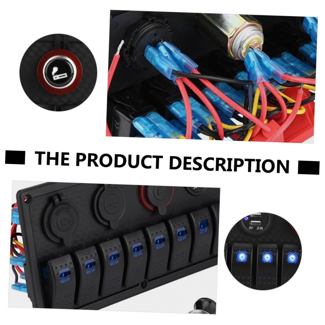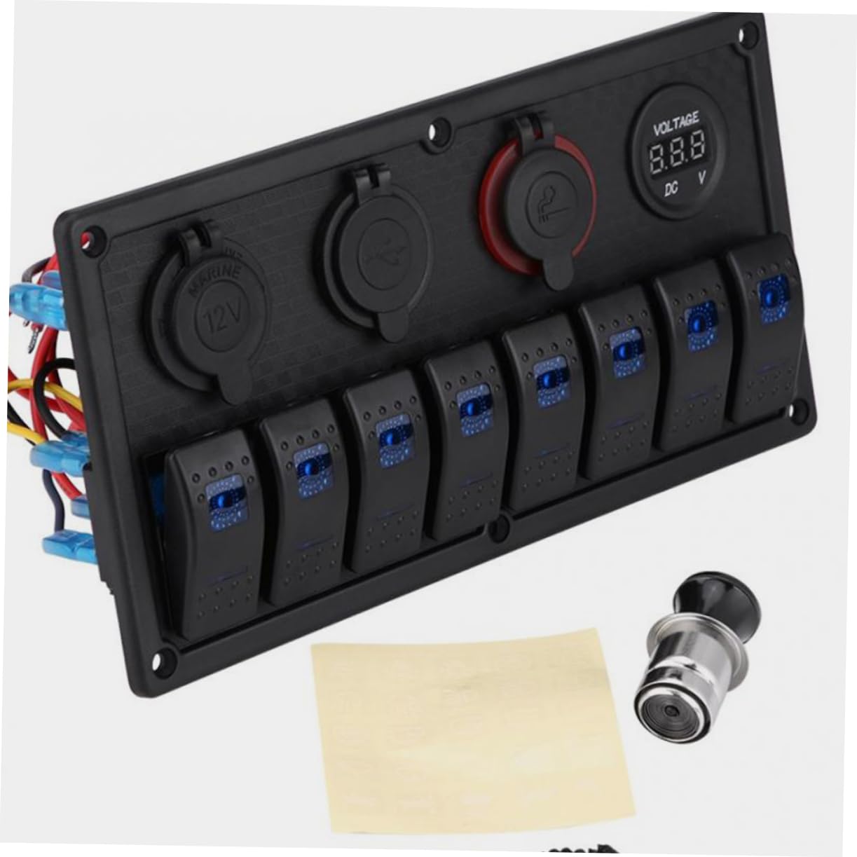 Package Include 1 -button panel 1 x 12V power take-out socket 1 x dual USB 1 x socket 1 x voltmeter Characteristics -Number of : 8 Panel. -Material: ABS Combination Control Panel. -Color: Black 8-button Panel. -Size: About 23.80X12.00X9.00cm/9.35X4.72X3.54in Double USB for RV. -Features: LED blue light display Rocker Panel. -Input voltage: 9-30V Safety Panel. -Waterproof rating: IP65 Marine Panel. - The voltmeter helps to monitor the voltage of your vehicle in real time, which is more convenient and safer Combination Panel. - Suitable for most 12v-24v vehicles, yachts, ships, caravans, buses, car, etc with Voltmeter. - Digital volt gauge display helps user pay attention to the voltage situation, ensure the equipment safety 8 Gang Panel. - Keep it waterproof with a rubber sealing cap. Easy to install, can be installed or horizontally Car Socket. - With blue prompt light also convenient to monitor in dark. A proper maintenance will extend and protect the battery and engine life Automotive Panel.Goods DescriptionRocker Panel This is a multifunctional 8-button panel, made of materials, safe and reliable, and can well protect your safety.Marine Panel The hard work and craftsmanship we have put in to make this product make the product have durability and , will not be easily damaged, and it is a durable and practical product