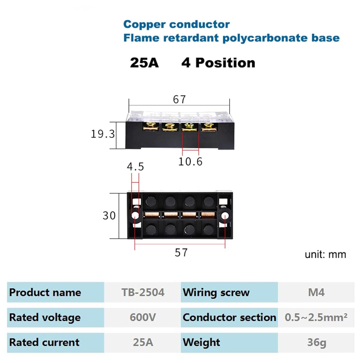 Wire TerminalsDual Row Strip Barrier Screw Terminal Block 600V 25A Fixed Wire Connector 3/4/5/6/8/10/12 Positions