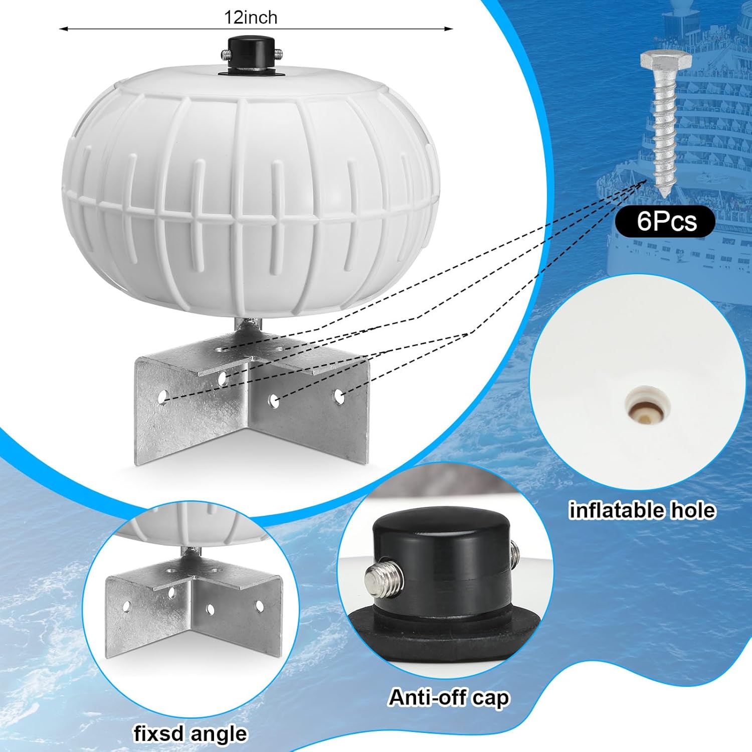 Features: This product includes a 12-inch inflatable dock wheel designed for corner installation, complete with all necessary mounting hardware. The large 2-inch diameter axle hub offers nice protection for both your dock and boat, preventing damage from impacts and contact The circular design of this dock wheel helps guide boats into the slip with ease, reducing friction and wear. It's specially engineered to absorb shocks and impacts, ensuring your boat and dock remain in pristine condition Specifications: Color: as picture Size: as picture Package includes: Inflatable dock wheel x 1 pc Notes: Manual measurement, please allow slight errors on size. The color may exist a slight difference due to different screen displays.