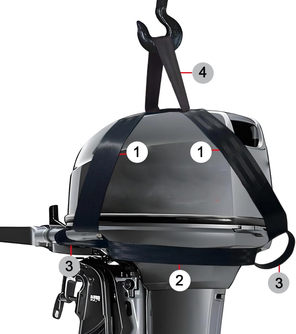 Outboard Motor Hoist Harness, for 2 HP to 30 HP Outboard Engine, Metal Buckle, High Intensity Lift Sling