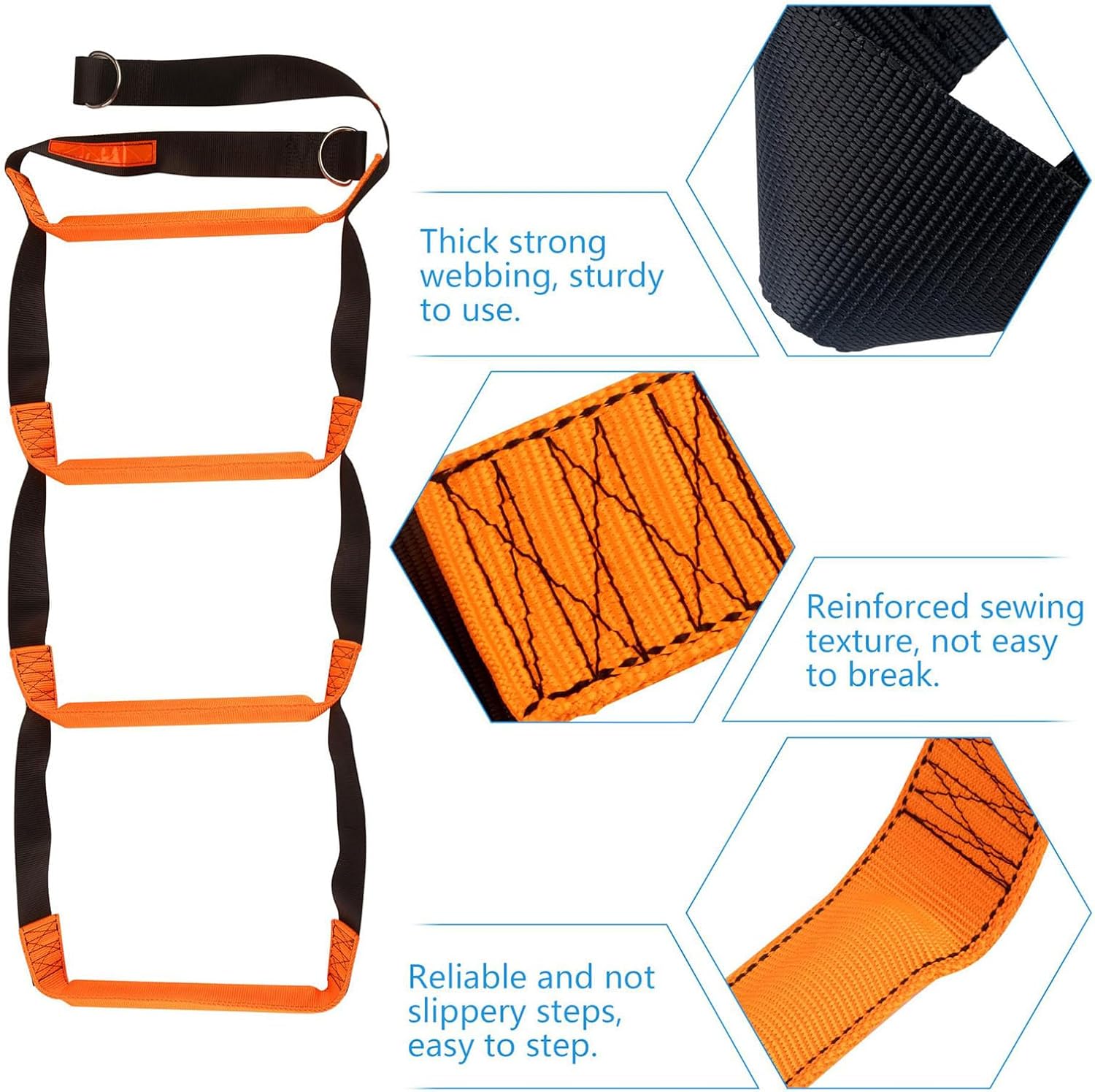 Features:【Durable and Long-Lasting】—This boat rope ladder is made of high-quality polyester, rust-resistant and oxidation-resistant, able to withstand harsh marine environments, ensuring its long-lasting durability on boats, kayaks, and inflatable boats.【Easy Installation】—The boat ladder can be quickly installed without tools. Its simple structure allows for easy connection and disassembly, making it ideal for frequent use or temporary setups.【Safe Climbing】—The rope ladder's non-slip, reinforced steps provide better grip and stability, reducing the risk of accidents in wet conditions—ideal for family outings and water adventures.【Compact Storage】—The boat accessories feature a flexible design that saves space, especially suitable for small boats, sailboats, or kayaks with limited space.【High Visibility】—The bright lemon color enhances visibility in dark or inclement weather, ensuring quick location in case of an emergency on board.Specifications:Product Type: Pool Ladder / Boat Ladder / Rope LadderColor: Black + OrangeMaterial: Polyester Fiber + Stainless SteelCraftsmanship: DC braiding, anti-slip designParameters: Four-step ladder, strong load-bearing capacity, oxidation resistantSize: Standard size, suitable for most boatsPracticality: Suitable for various boat conditions, providing a safe and convenient boarding route, especially in emergenciesPackage List:1 x Pool Ladder / Boat Ladder / Rope Ladder / Boat AccessoriesNote:Please confirm the compatibility of accessories before use.