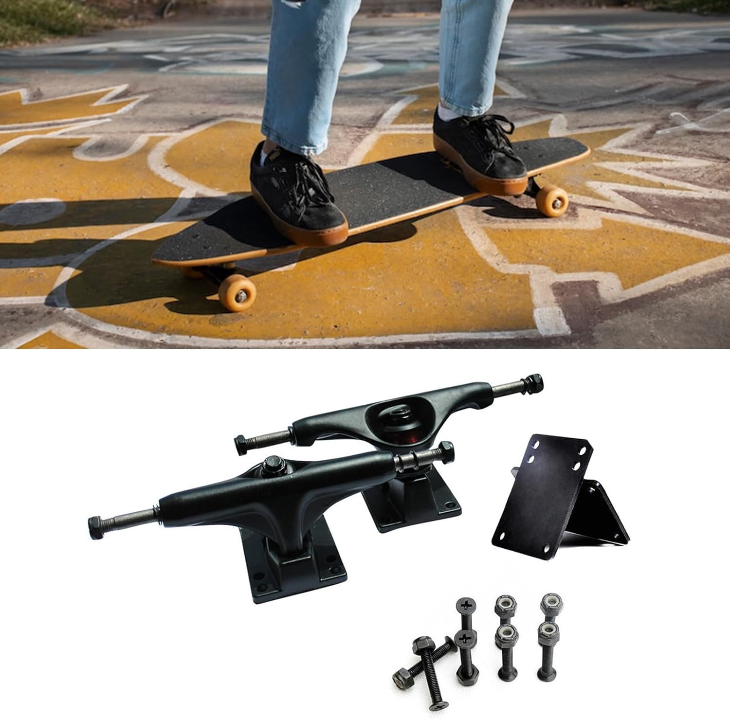 2Pcs Skateboard Trucks 5inch Aluminum Longboards Truck Skateboards Wheel Bracket Base Hardware Bridge BaseFeatures:Make of Aluminum materials, light weights and enduring.Strong impacts resistance and wear resistance.Solid with great load capacity, light weights may not harm skating speed.Stable structure have excellent performances, shockproof and practical.Turn quicker and reacts faster, more practical.Specifications:Materials: AluminumColor: Blue/BlackSize: about 19.2x5.5cm/7.56x2.17inchPackage Includes:2Pcs Skateboards Wheel Bracket2Pcs Spacer8Pcs ScrewsNote:Please allow 1-2cm errors due to manual measurement, make sure that you do not mind before you order. Due to the difference between different monitors, the picture may not reflect the actual color of the item.