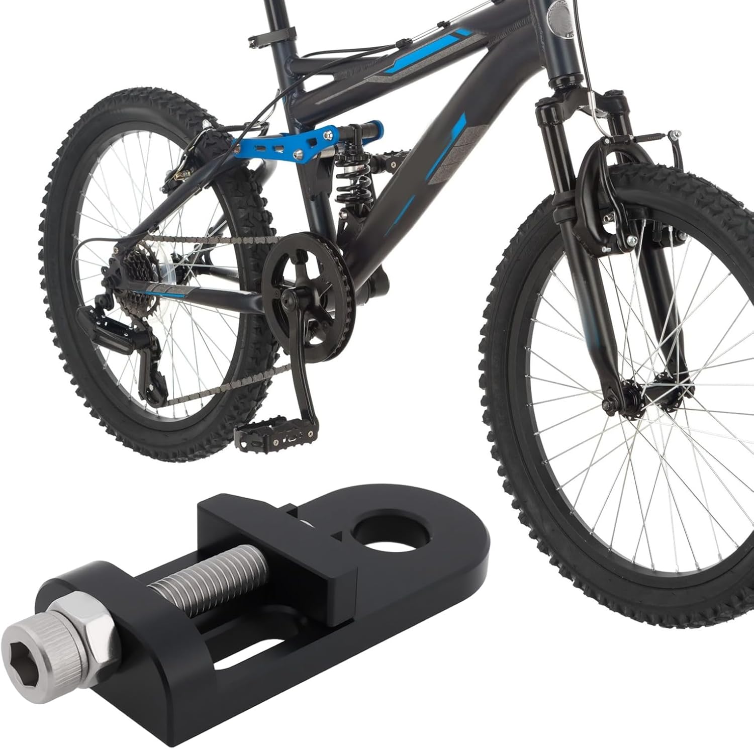 Item Descriptions:-Compatible with BMX mountain bikes,This bikes chain tensioner is perfect for mountain and folding bikes, with an adjustable design that fits a wide range of frames.-The 17mm adaptable range allows for easy installation, offering versatile functionality for avid cyclists.-The product measures 72.7mm in length, 26.5mm in width, 14.2mm in thickness, and has a 10mm hole diameter.-The bikes chain tensioner features an ultra-strong aluminum alloy build, designed to withstand frequent use. Its wear-resistant and anti-corrosive properties ensure a long service life, while maintaining a sturdy structure.-Prevents chain slack and derailment, enhancing riding safety and performance.Package:1X Bike Chain Tensioner (Red)1X Bike Chain Tensioner (Black)Item Specifications:Color:Red/BlackMaterial:Aluminum AlloyLength:72.7mmWidth:26.5mmAperture:10mmThickness:14.2mm