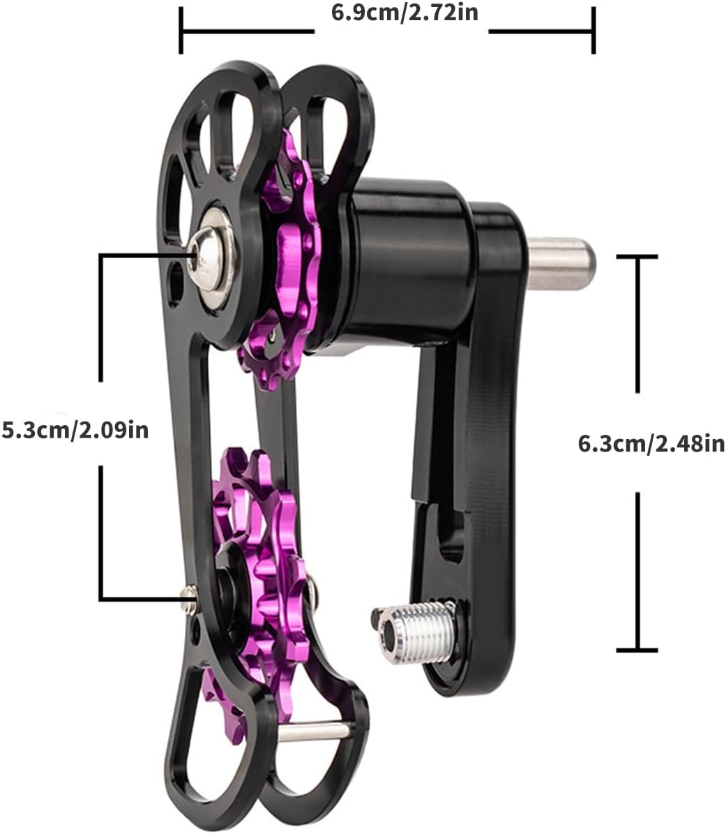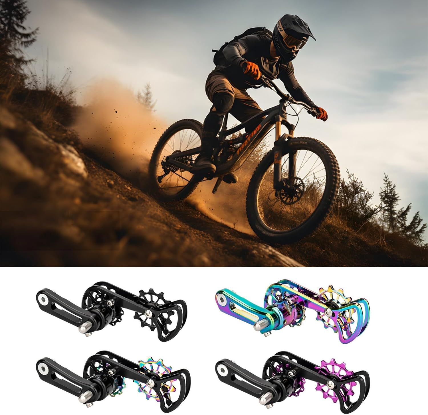 Bicycles Chain Guide Pulley Single Speed Bike Chain Tensioner Bicycles Derailleur Chains Guides Cycling AccessoriesFeatures:Designed to provide a simple, effective and adjustable way to tension a single speed.Make of Aluminum Alloy, light weight and practical to use.With bicycles chain guide pulley that minimizes chain slap and vibrations, a quiet and enjoyable biking Perfect for both mountain bikes and folding bikes, our rear chain guide improves stability and reduces noise.Our guide wheel ensures stable, noiseless rides by minimizing chain wear and providing smooth speed transit on any terrain.Specifications:Component: Aluminum AlloyColor: Black/01/Colorful/Black ColorfulSize: about 63x69x53mm/2.48x2.72x2.09inchPackage Includes:1Pc Mountain Bike Chain TensionerNote:Please allow 1-2cm errors due to manual measurement, make sure that you do not mind before you order. Due to the difference between different monitors, the picture may not reflect the actual color of the item.