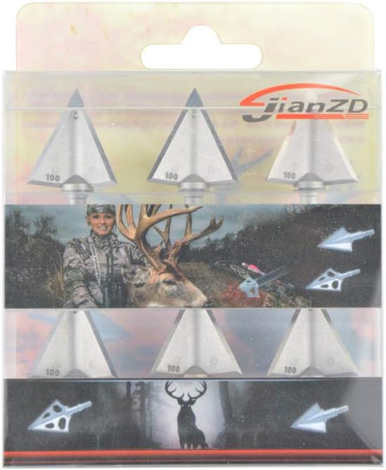 Material: 100% Steel Tough Forming method: One-piece casting Design Technology: Cut-On-Contact Design, Diamond Cut Sharpness and 3 fixed razor sharp blades, can be resharpened Ex-factory Testing :100% Spin Tested, Deployment Tested, Strength Tested, Sharpness Tested Color: Silver Weight: 100 grainPackage: 6 pcs broadheads