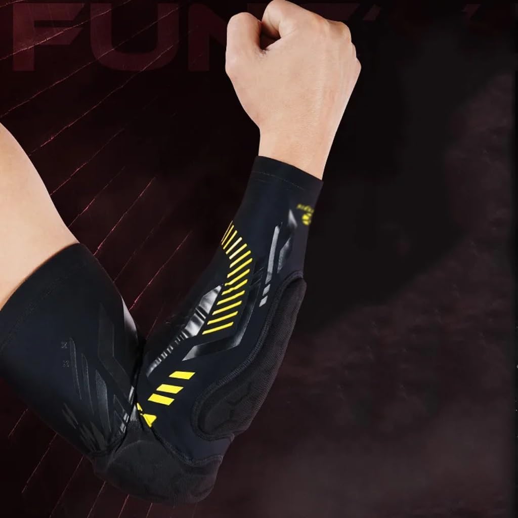 Comfortable and breathable lining.Silicone anti-slip strips prevent your arm sleeves from slipping off during exercise.You can adjust the compression strength with hand, universal for both right and left hand.Suitable for different arm sizes.Suitable for multi-scene use.Material: Nylon SpandexSuitable for: Men, Women, Adult, Male, Female, YouthPacking list: 1 elbow pad (not include other display)Suitable for all outdoor activities, including basketball, softball, badminton, volleyball, soccer, tennis, horseback riding, skating, cyclingNotes:Due to lighting reasons due to differences in screen , the color of this item may be slightly different from the picture.Please allow for slight size differences due to different manual measurements.With wick feature which makes it more and prevents foul odor; you are assured it still feels light with perspiration! All features in amazingly designed for comfort product