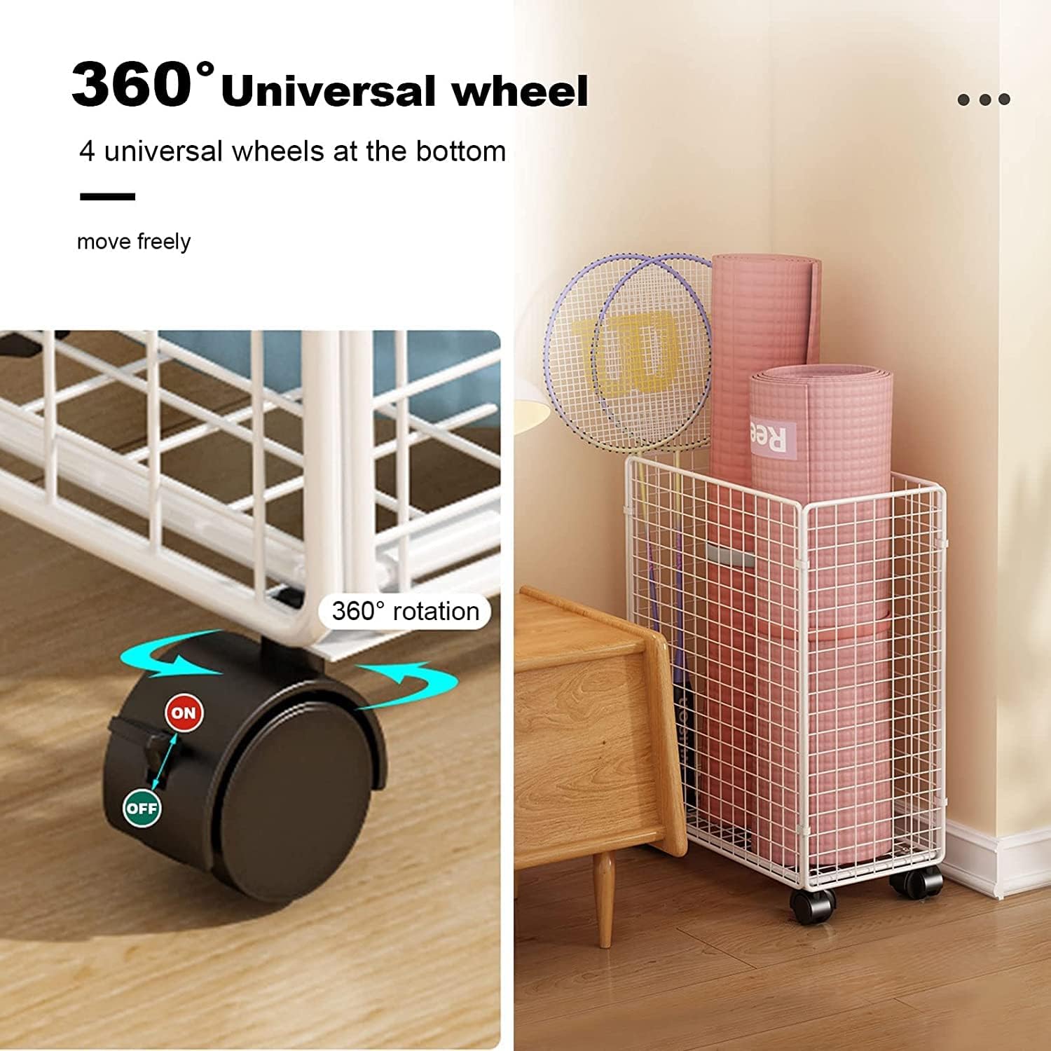 Foam Roller Storage Rack Organizer:Name:Yoga Mat Storage Racks,Yoga Mat Storage Basket Dimensions: 15"L x 8.1"W x 20.9"H/38*20.5*53cm material: metal Color: Black, Gold, White Suitable for: fitness class, home, gym, studio, gym, office, garage, etc. Package Includes: 1x Yoga Mat storage Rack