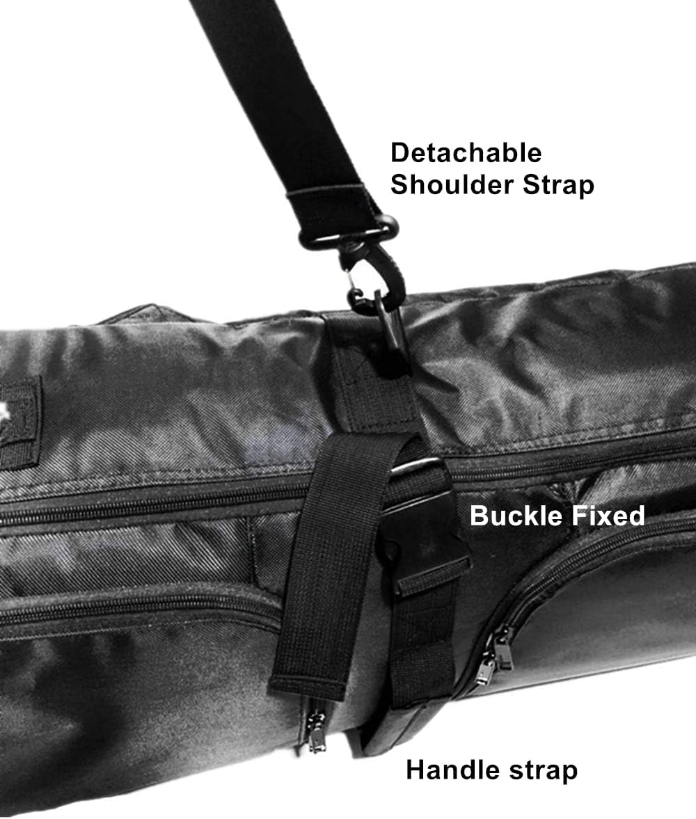 UNISTRENGH Durable Waterproof Ski Snowboard Bag with Adjustable Shoulder StrapMaterial:100% PolyesterSize: 146cm/156cm/166cmThree independent external storage pockets,waterproof.One main zipper pocket for snow/skis board.Dimensions:(Only For Reference)146cm bag fit with the (142-153)cm board156cm bag fit with the (148-165)cm board166cm bag fit with the (164-174)cm boardFeature:With wheels1. Skis and Snow board general purpose.2. Large capacity, all ski equipments (Boards, boots,helmet,protective gear,ski clothes) full in a bag.3. 3-Layers of thickened High Absorbent Cotton Pad, stronger protective ability,also can be carried by air consignment.4. 3 separate store pockets, classified and stored, more hygienic and convenient.5. Fashionable design, bright color,with a high recognition,avoid loss in public place, easy to recognize.6. With YKK Zippered and All metal slings,more sturdy and durable.7. The thickened handlebars, more comfortable to ease the friction between the hand and the straps.8. Three ways for portable, tote,shoulders bag and messengers bag.Pls Notes:1.Pls pay attention to the size before purchasing.2.Care: Hand wash with cold water or 30℃-40℃ lukewarm water.3.Tolerance: manual measurement, within 0.39"-0.79" deviation.We focus on making customers enjoy our products at a reasonable price. After all, we are customers, too, so if you have any questions or have a wonderful idea about this skis board bag, you are always welcome to contact us by e-mail, we will answer you within 24 hours.