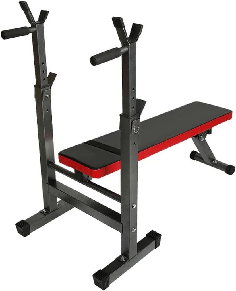 Features:Practice barbell bench press Practice sit-up parallel bar training.Special design, safety protection hook. It can be folded and does not take up space.Designed with an adjustable back cushion, the four-position backrest acts as a cushion to support your back during workouts. It helps minimize fatigue and keeps you comfortable during intense workout regimens.Use a weight bench for intense weightlifting or strength training from the comfort of your home! It includes a weight rack that fits standard sized barbells and weight plates for ease of use and convenience!This complete exercise device features an innovative construction that combines arm and leg stands, for strengthening a variety of muscle groups and performing complete workouts.Color: black,Red,whiteProduct packaging size: 115*36*15cm,Gross weight: 13.5kg,Material: iron steel + PVC padding,Maximum load-bearing capacity: 150 kgMaximum unfolded size: 112 x 58.5 x 104 cmRecliner cushion size: 110 x 26 x 4.5 cmThe dumbbell rack can be adjusted in five positions (the bar dumbbell is not included in the set)Package Includes:1 x weight benchNotes:Due to the light and screen setting difference, the item's color may be slightly different from the pictures.Please allow slight dimension difference due to different manual measurement.
