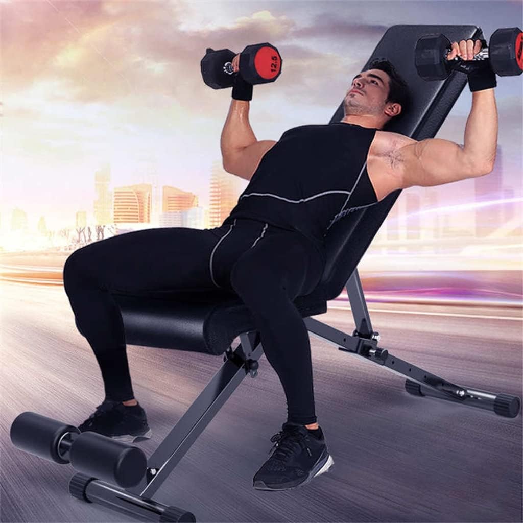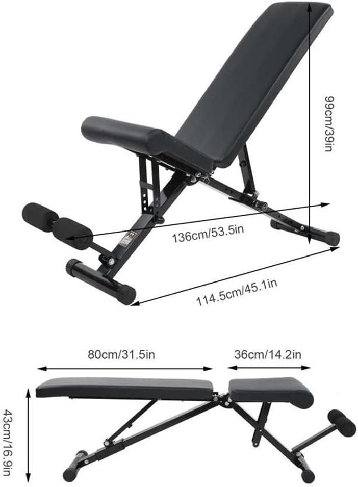 Features:This universal weight bench can provide you with a variety of exercises. It can do a lot of strength training for arms, legs, buttocks and abdominal muscles, such as sit‑ups, biceps flexion, shoulder pressure, single‑arm rowing, etc.Adjustable bench is designed with 8 back position adjustments and 3 seat position adjustments to meet all your needs when exercising. It can be used as a flat bench, incline bench, or decline bench.Using heavy‑duty steel, the exercise bench is very sturdy and . The triangular design keeps the training bench stable during your training.Made of 5‑layer thickened and odorless PU material, high‑density foam pad, more comfortable for fitness.This bench can be folded in a few seconds. This multi flat bench can be folded twice, can stand against a wall to save space, or can be placed under a bed. Suitable for beginners and advanced users as a home gym.Material: Alloy steel, PUColor: blackIncline Bench Size: Approx. 114.5x136x99cm/45.1x53.5x39inFlat Bench Size: Approx. 80x36x43cm/31.5x14.2x16.9inWeight: Approx. 13500g/476.2ozBearing Weight: 300KGInstallation Steps:1. the product package and confirm the position of each part2. Follow the product instructions and install them in sequence3. Tighten the fixing screws to see if the installation is firmPackage Includes:1 x weight benchNotes:Due to the light and screen setting difference, the item's color may be slightly different from the pictures.Please allow slight dimension difference due to different manual measurement.