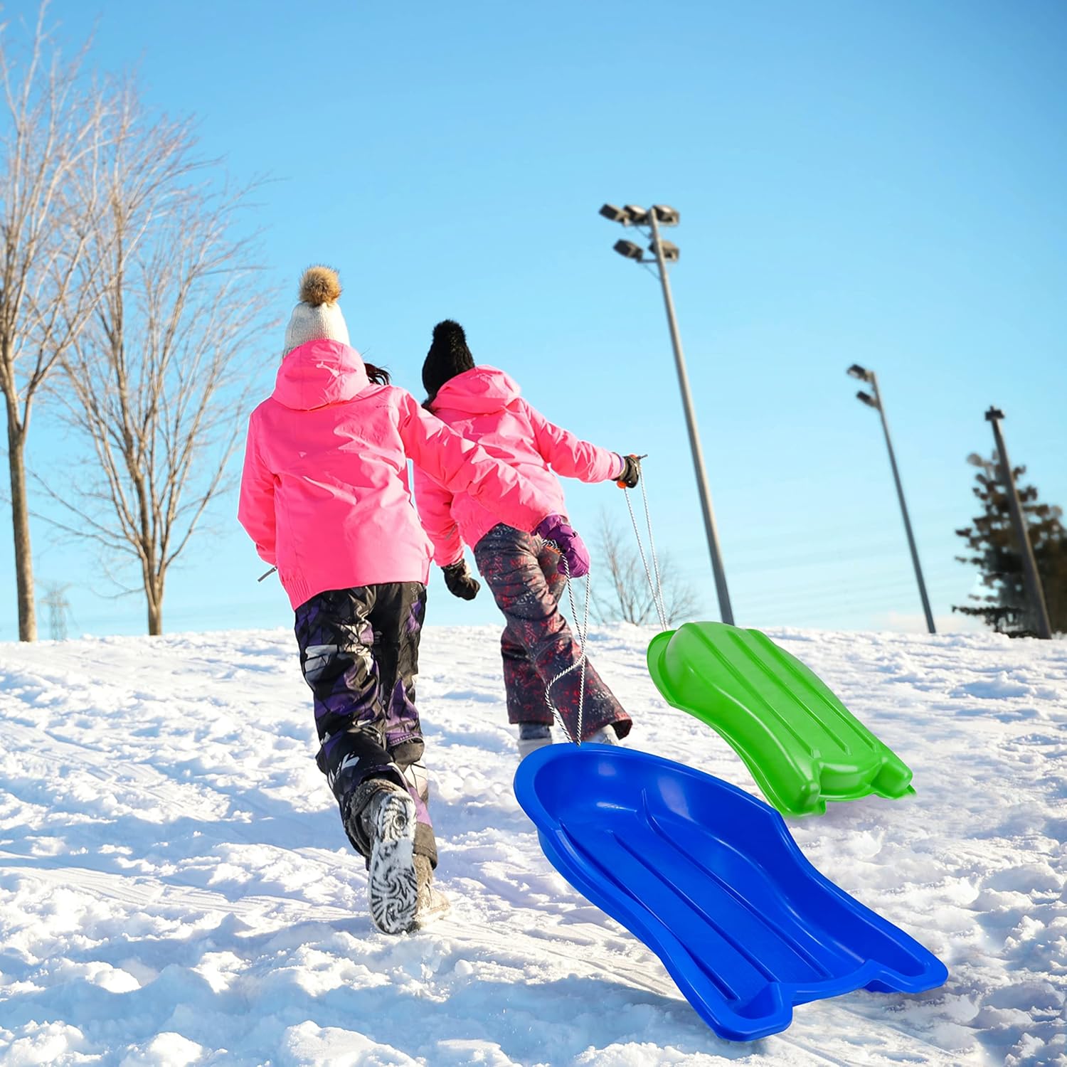 The Booster Sled by ERA is the perfect companion to a snowy winter's day. Delight your children and get the whole family outside with this affordable alternative to traditional wooden sleighs. Each 37-inch long sled is perfectly sized for a single rider aged 6 and up. Designed specifically for winter snow sledding, this toboggan also can be hand towed with the included rope. Weighing in at only 3 pounds, this lightweight sled is a breeze to carry uphill. Each sled is formed from a single piece of high grade polypropylene to ensure season after season of winter fun. Molded rims provide the control and comfort you need while racing downhill. Made and tested in Canada for long, snowy winters at sub-zero temperatures. This brightly colored snow toy is sure to put a smile on kids' faces.