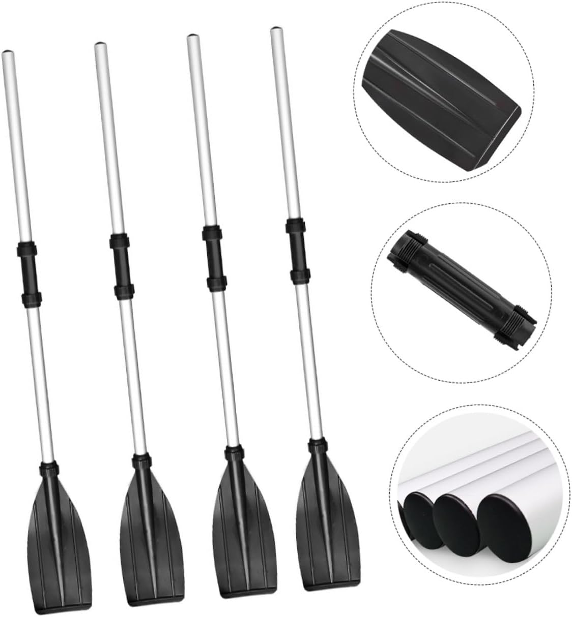 Package List 4 x paddles Characteristics - Material: Aluminum alloy, plastic kayak paddle. - Size: 123.50X14.50X5.00cm/48.54X5.70X1.97in detachable paddle - Color: Black boat oars. - Fit for boat, kayak, canoe and so on alloy paddle. - You can enjoy a fun . Just buy it, do not hesitation kayak oars for game. - Portable and detachable, easy to carry detachable boat oars. - Light weight and anti handle, easy to use canoe paddle. - Made of aluminum alloy, plastic materials, and to use kayak oars.Goods Descriptiondetachable kayak paddle Light weight, easy to use, you can enjoy a great.detachable boat oars Besides, it is portable and detachable, easy to carry.portable kayak paddle , , portable, easy to use, multiple installation methods.boat oars This kayak paddle is made from material, and .kayak oars This for boat, kayak, canoe and so on