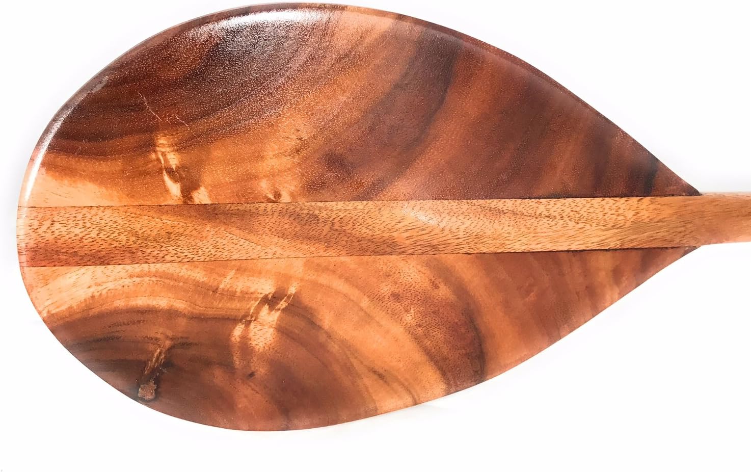 Here is a beautiful koa paddle measuring 24", straight shaft (steersman design). Proudly made in HawaiiSpecifications: * Wood: KOA * Size: 24" X 8" * Grain: each paddle is unique, the grain WILL vary from the picture * MADE IN HAWAII * Perfect for corporate gift, trophies or special occasions * Contact us for laser engraving options (minimum quantity required)
