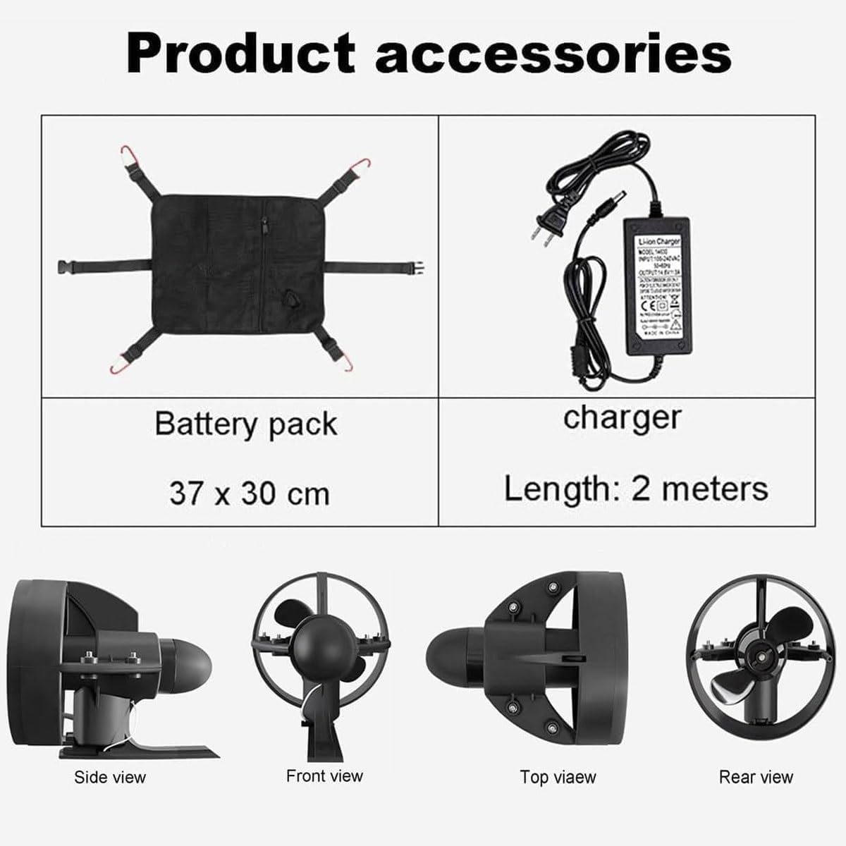Features:Battery lasts up to 2.5 hours at low speeds and up to 45 minutes at high speeds.Adapters Can Be Used Separately For Inflatables, Slide-In Fin Boxes Or Flip-Lock Fin Boxes, Adapters For Attaching To Kayaks And Canoes.Recreational paddle boards can be used in safe waters for stand up reward paddling, water yoga, family outings.Specifications:Name:Electric FinStart mode: button switchPower: 216W/288WBattery life (maximum power): 1 hour/1.5 hourBattery: 22AhPropeller Diameter: 15cmGear position: forward - backwardSpeed: 3-4 km(216W)/4-5 km(288W)Volume: 39×31×26MMWeight: 4.8KG/5KGOccasion: Offshore watersPackage Included:1X Propeller1X Battery compartment1X Battery pack1X ChargerNotes:1. Due to manual measurement, 2-3cm deviation is allowed.2. Different monitors have different calls, and the product color is subject to the actual product.