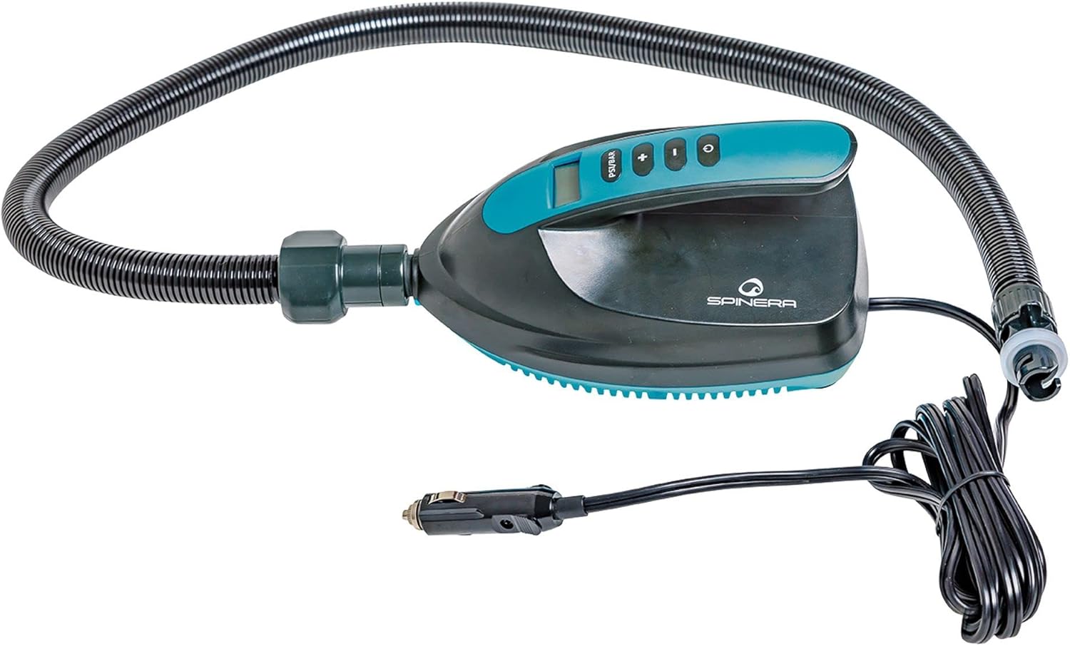 Spinera high pressure 12V pump, 16 PSI - SUP high pressure - pump stops automatically - small innovative design - digital LCD and touch button Material: ABS + PA (orange and black colour) Voltage: DC 12V Pressure: 16PSI Accessories: cable: 3M, a hose 100 cm with a nozzle Airflow: 70 l/min Packaging: layer 1PC/5 colour box, 8 pieces 5 Product size: 23 x 14 x 12 cm. Advantage: first set the PSI, the pump stops automatically when it has reached the set pressure. Function: high pressure pump for inflating tents, boats, SUPs, etc. 5 different valve adapters included in box contents Weight: 1.4 kg Inflation time 10.10 sup 15 cm: for 10 PSI - approx. 15 minutes for 15 PSI - approx. 20 minutes 76 dB keyword for this item: high pressure pump, SUP pump, stand up paddle board pump.