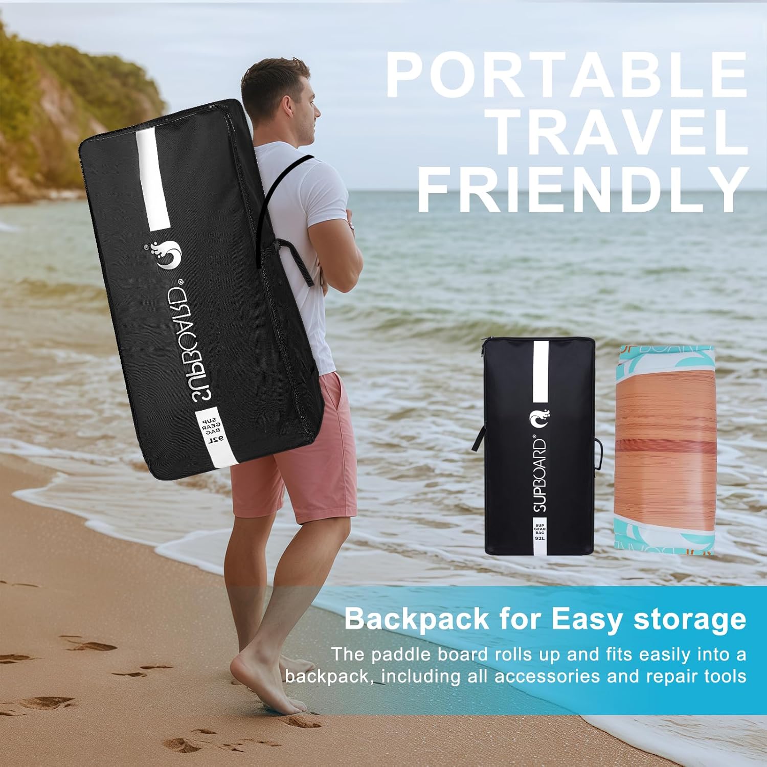 Enjoy effortless adventures on water with our ultra-stable 10.5' x 32" inflatable SUP, designed for all skill levels. Built with military-grade PVC and a non-slip EVA deck, this paddle board offers 440 lbs weight capacity—perfect for solo paddling, family fun, or even bringing your dog! The wide, rigid design ensures balance for yoga poses and smooth fishing casts, while the removable fin enhances tracking and control. Includes adjustable paddle, pump, backpack, leash, and repair kit—everything you need to hit the water immediately. Weighing just 28 lbs, it inflates in 10 minutes and packs down small for easy transport. Whether you're exploring lakes, rivers, or oceans, this durable, high-performance SUP is your ticket to endless water adventures.