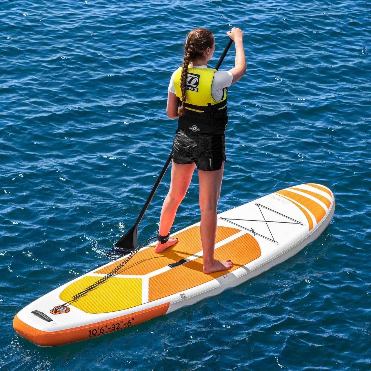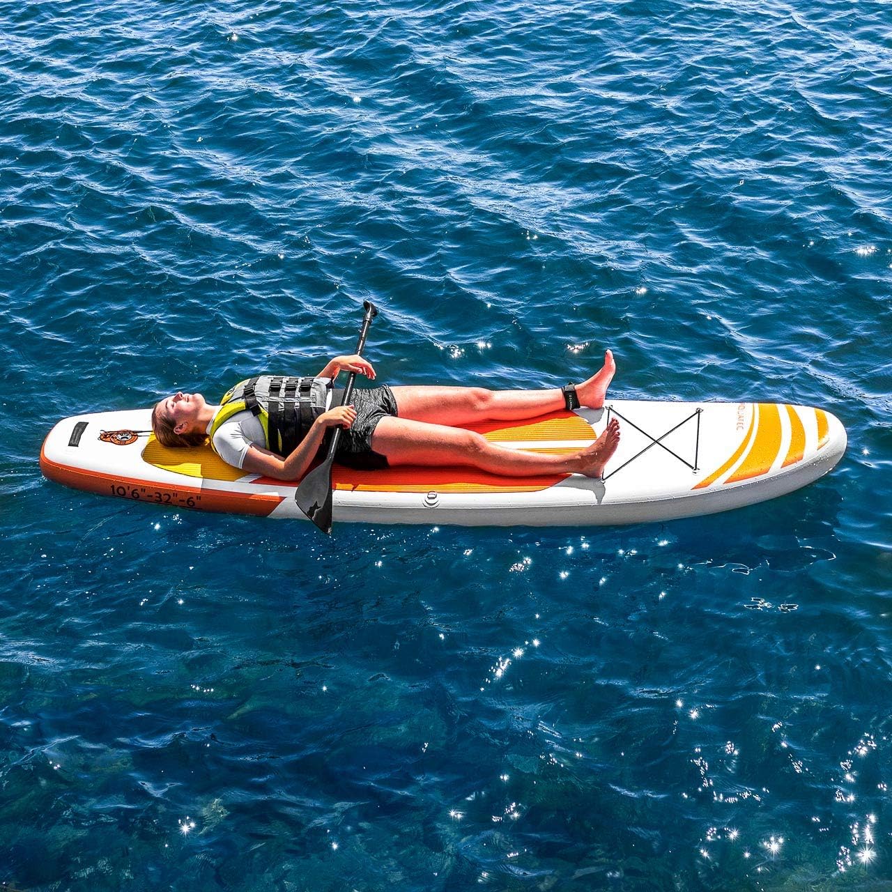 Please Note: This product is non-returnable due to hygiene reasons; this does not affect your statutory rights. SIZES AVAILABLE:Orange Lucia Model: 10ft 6in L x 32in W (3.2m x 0.8m) | 11ft 6in L x 32in (3.5m x 0.8m) Blue Cruiser Model: 10ft 6in L x 32in W (3.2m x 0.8m) | 11ft 6in L x 32in (3.5m x 0.8m) MATERIALS:Lucia Board: High pressure drop stitch with military-grade PVC & EVA non-slip deck padCruiser Board: Fusion Technology + Military-Grade PVC + EVA non-slip deck padPaddle Material: 3-piece adjustable aluminium paddleCoiled Leash Material: Waterproof TPU material – excellent performance when wetIncluded Paddle Pag: Polyester Coated PVCMISCELLANEOUS: What You Get: board, pump, paddle, board backpack, coiled leash, carry strap & repair kit3-piece paddle features an adjustable length – 69-85in (175-215cm) Repair Kit includes a wrench, PVC patch & glueDouble action hand pump features & inflate & deflate optionAll styles of paddle board feature 1x removable centre fin & 2x side finsUPGRADE OPTIONS: Paddle Board Chair – Experience supreme comfort whilst you paddle