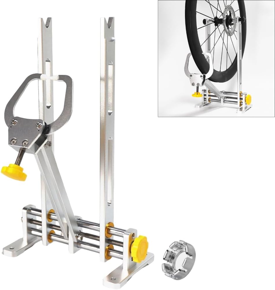 Features: Make from Aluminum alloys, high strength and corrosions resistance. Adjust knob, use more convenient, touching more comfortable. Column adopts 4 golden linearly sliding bearing. Three test table Detects circles of the deflections of beating and smoothness of the brake disc. Suitable for opening gears 55-200mm hubs, brackets is vertically suitable for 16-29inch wheel. Specifications: Component: Aluminum alloys and ABS Size: about 47x27cm/16.54x10.63inch Color: Blue color/gold note: Please allow 1-2cm errors due to manual measurement, make surely that you not mind before order. Due to difference between different monitors, the picture may not reflect the actual color. Package Includes: 1set Bicycles Wheel Truing Stand