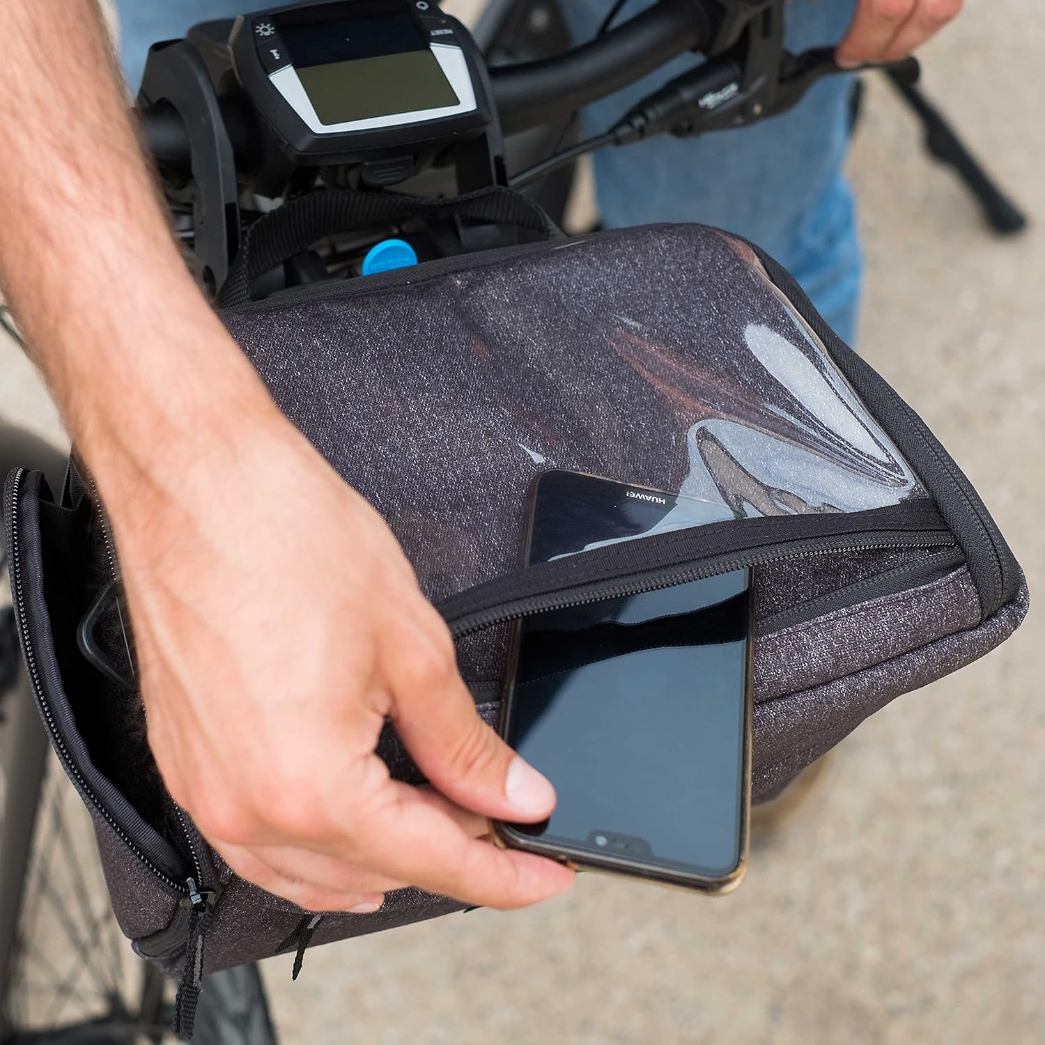 The FrontPack of BBB Cycling is a multifunctional bike bag for the bike handlebar and has a content of 550ml. Place the FrontPack on your bike handlebar and you can bring the key things with you. The top of the bag is see through, here you can keep your phone or map to show you the way during your ride. The bag is suitable for all kinds of bicycles, like an urban or city bike and even e-bikes.Use the CarrierCover (BSB-97) of BBB Cycling to protect the FrontPack against rain and dirt.Storage spaceThe large storage compartment has a foam inner lining for protection and a mesh pocket to keep things separated. One side of the bag is perfect for a water bottle, which can be securely fastened with an elastic strap. On the other side and up front are compartments with zippers. On top there is a compartment to store all easy-to-access items, like your phone or a map.Attach with click systemThe bicycle cargo pack is attached to the handlebar of your bike with a mounting system. This easy on and off system allows you to take your bag easily and fast, without removing the whole mounting system.Shoulder strapEven off your bike this FrontPack is very practical. With the adjustable shoulder strap you can easily take the bag with you.Suitable for LED attachment The back side of the bag is equipped with a strap for a LED attachment. The BBB Cycling Light Spot BLS-147 for example, is perfectly suitable for this pannier bag. The bag itself also has reflective details.SpecificationsColors: Grey melangeSizes: UniversalMaterial: NylonClosing system: ZippersMounting system: Click systemWater resistant: NoVolume (cm3): 550Height (cm): 18Width (cm): 26Length (mm): 160About BBB CyclingBBB Cycling wants to be there for every cyclist, wherever you're going. With products to elevate and enhance the carefree experience of biking, BBB Cycling has spent the past 25 years crafting gear and accessories that have received more than 100 product and innovation awards. By cherishing a connection to the cycling community and rigorously testing products, BBB Cycling remains constantly motivated to be part of your ride.