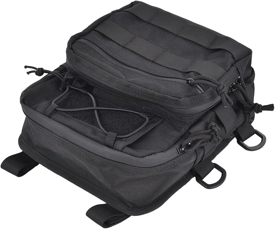 Features: 1. Durable and wear-resistant, our bags are made of high-density waterproof 1680D fabric for longer service life. 2. Waterproof zipper. 3. One-inch and two-inch wide nylon-modified MOLLE systems on the front and rear panels for placing the straps. This allows for multiple mounting options! 4. Comes with 4 Velcro tapes for multi-purpose installation. 5. With just the right amount of storage space and the perfect size, the handlebar bag will be ready for your next trip. Specifications: 100% brand new Product name: Handlebar bag Material: Made of 1680D ballistic nylon Size: 10 ' (H) x 8 " (W) x 5" (D) Color: Black (as shown) Applicable models: Can be attached to handlebars with or without risers, as well as sissy handlebars Package List: 1X Handlebar Bag