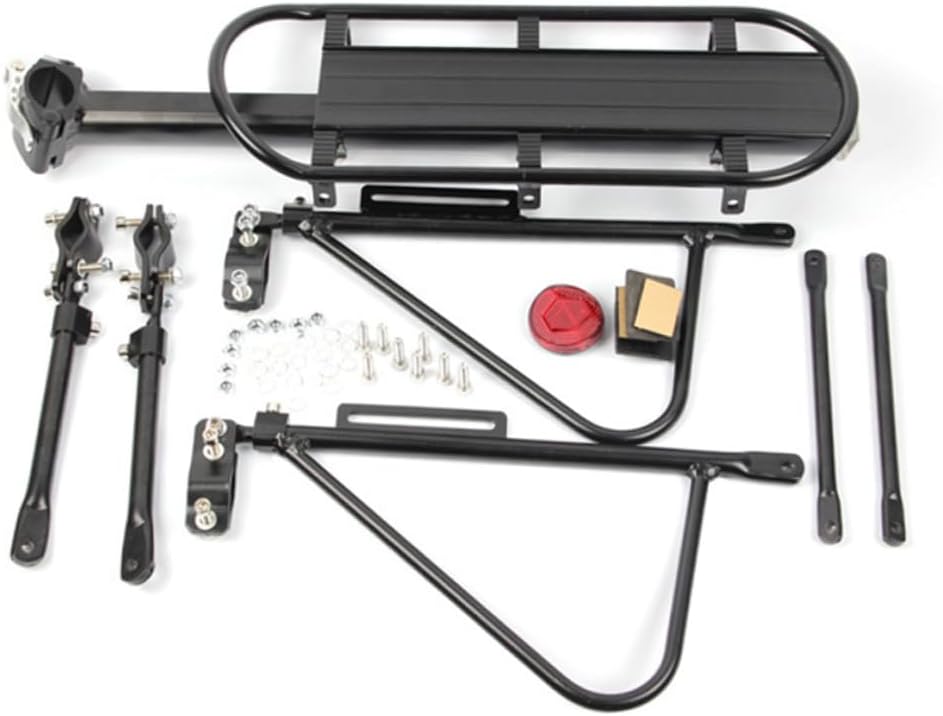 Package Include 1 x Bike Carrier Rack Features -Product Info:Bicycle shelves - Material: Aluminum alloy. - Color: Black. - Size: About 55 x 14.5 x 40.5 cm. - Install one and easy pick up you girlfriends for outdoor trip bike carrier rack. - aluminum alloy frame is strong and durable mount racks. - Fits most bikes, especially for road bike and mountain bike balance solid cargo racks. - Lightweight compact design for easy transportation bike rear pannier. - Movable and balance fixed rack, it is to use for suitcases, backpacks, baskets so that you can carry lots of things with you and make a convenient short trip luggage carrier. - Made of material, the bike rack is durable and use.Goods Descriptionluggage carrier solid aluminum alloy made, the frame is strong and durable.bike carrier rack This item is manufactured with for durable and use.bike shelf accessories Movable and fixed rack, it is to use for suitcases, backpacks, baskets so that you can carry lots of things with you and make a convenient short trip