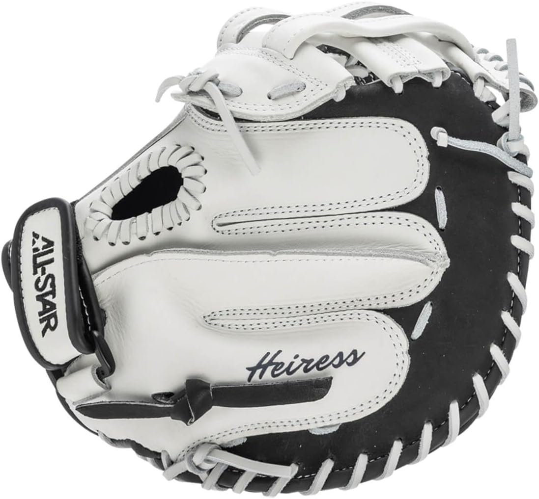 The Heiress series is recommended for fastpitch catchers at the travel-ball level requiring more lasting durability from their glove. This mitt is built with durable steer hide leather, premium lacing, a profiled wide pocket, an adjustable wrist closure, and a padded index finger pass-through.
