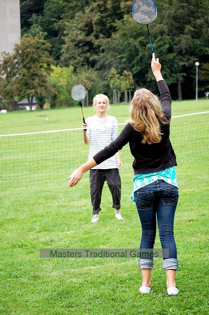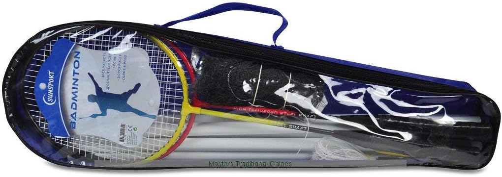 Badminton set includes 4 rackets, 2 shuttle cocks, 1 badminton net (640x76 cms),2 poles, stabilising support guy ropes for poles;includes multilingual rule book;includes storage and carrying bag