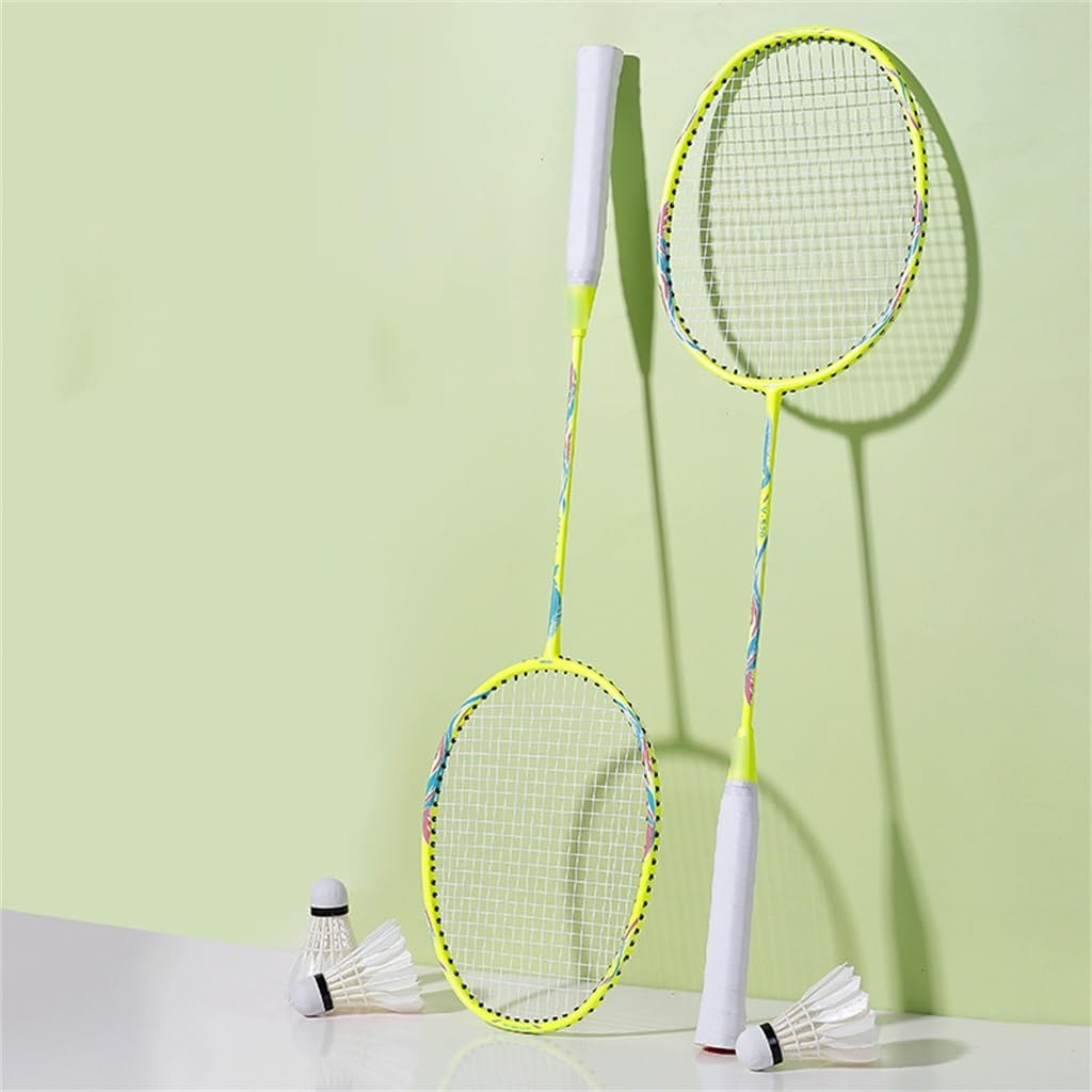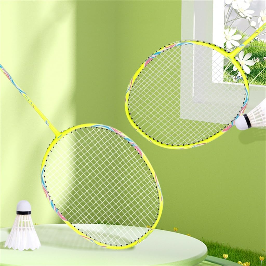 Flat racket frame with low resistance.Absorbs energy from deformation of racket strings.Reduces the amplitude of deformation and changes the frequency of vibration.The centre pole articulation enhances the racket's toughness and strengthens the racket's striking power.Deepen the string groove to fully protect the line.Packing list: badminton racket * 1 set (other display items not included)Notes:Due to manual measurement, please allow 2-3 cm error.Due to different light, the actual colour may be slightly different from the picture.Bring the badminton racket outdoors, enjoy the endless outdoor fun, and at the same time strengthen the cooperation between hands and eyes