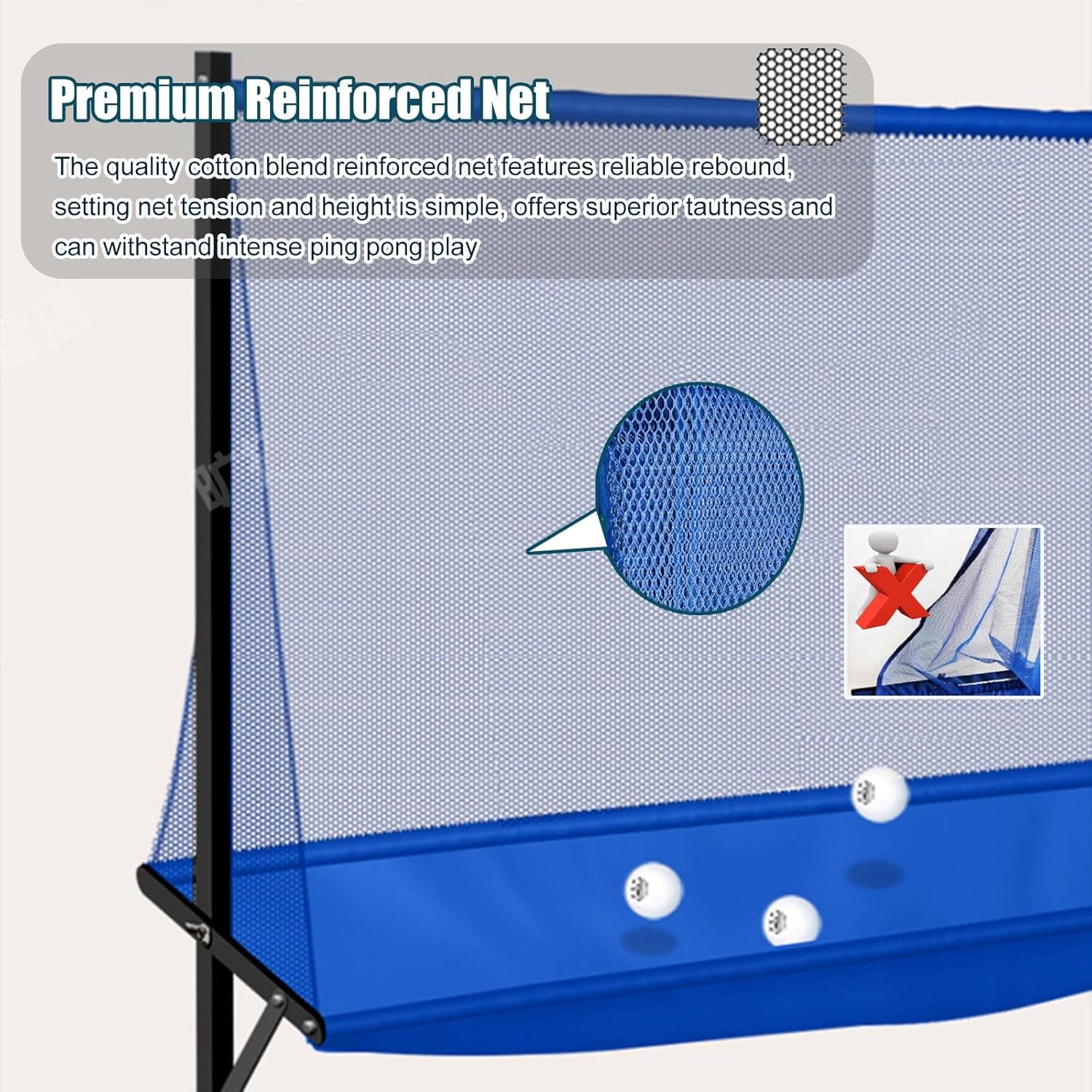 We all know that to play the best table tennis, you need to practice, practice, practice. No more need for the person on the other end of the table - this net will catch all your balls during training and practice Specification: - Name: Mobile Table Tennis Net - Size: 210x142x45cm/87x59x17.7in - Colour: blue - Whether assembled or not: yes - Weight: 5kg Features: - No miss the ball, save time - It doesn't need to be clamped to a table - High efficiency to catch the ball without rebound - Universal wheel with brake, easy to move and fix; - Sturdy metal frame and impermeable mesh - Play inside or outside for girls, boys, adults, and family - suitable for multi-ball practice and the use of vs brands of ball machines - A great gift choice for family and friends who are athletes Package includes: 1 x Table tennis net (Includes mounting accessories) Notes: - Manual measurement, please allow slight errors on size. - The color may exist a slight difference due to different screen displays. - Children need to use it under adult supervision.
