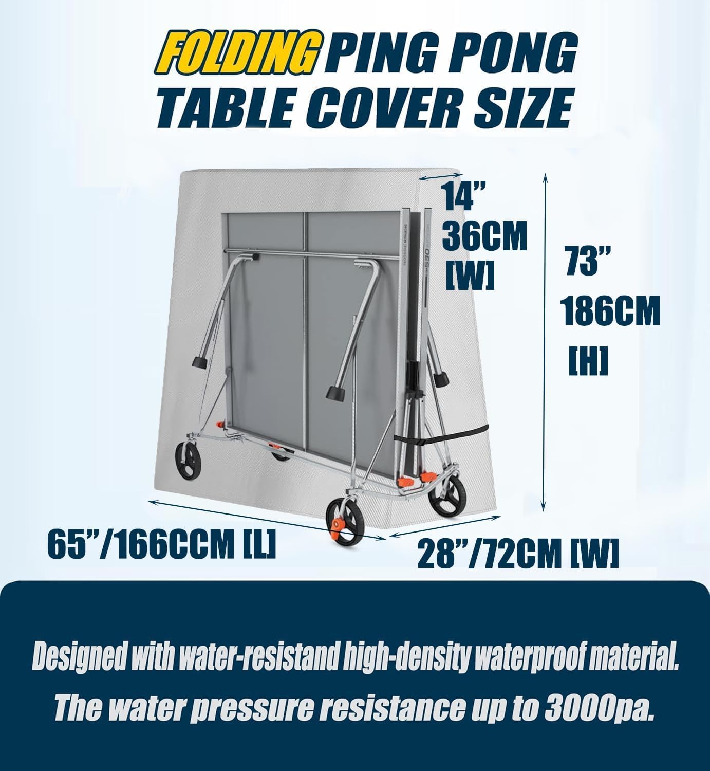Expertly sized at L65" x W28" x H73", OUTTDID 's long-lasting table tennis cover is perfect for most standard 9x5 FT foldable ping pong tables, ensuring a tight and protective fit.