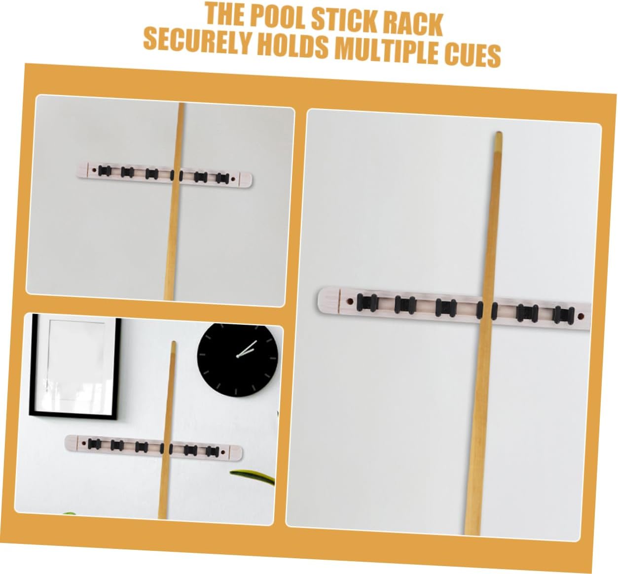 Package List 2 x pairs of Pool Cue Racks Features -Size:36.00X5.50X3.00cm/14.15X2.16X1.18in billiard cue storage rack -Material:Wood pool table racks for balls -Strong material: constructed from solid wood, this cue rack is built to last, offering excellent protection for your cues and resisting deformation over time billiard supplies -Size:36.00X4.00X3.00cm/14.15X1.57X1.18in billiards stand -Ample storage space: with six slots, this pool stick rack provides ample storage for multiple cues, allowing for easy organization and quick access, enhancing your playing experience wall mounted pool stick rack -Elegant design: contemporary design of this cue rack adds a stylish element to your billiard room, elevating the overall look solid wood billiard racks -Color:Beige pool table supplies -Efficient wall mounting: the wall mounted pool rack maximizes space efficiency and is easy to install, ensuring your cues are neatly stored and protected from bending or damage wall mount cue rack -Wide range of uses: nice for homes, clubs, and entertainment venues, this cue rack keeps your cues organized, preventing loss and damage billiard accessoryGoods Informationwall mounted cue holder rack Organize your billiards equipment with this stylish and functional cue rack.wall mount cue rack The wall-mounted design keeps your cues off the floor and neatly arranged, ensuring they are always ready for use and enhancing your game room appearance.billiards table accessories Made from solid wood with a sleek finish, it offers a sturdy and attractive for cue storage