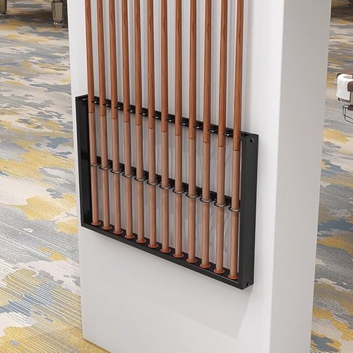 Transform your billiard space into a stylish and organized haven with our Pool Cue Holder Wall Mount. This essential accessory is designed for securely storing and showcasing your pool cues, ensuring they remain in pristine condition while adding a touch of elegance to your game area. **Product Highlights:** 1. **Durable Design:** Made from high-quality iron with a baked finish, this cue stick holder is both rust-proof and fade-resistant, ensuring longevity and maintaining its sleek appearance. 2. **Versatile Slot Sizes:** The enlarged cue slots accommodate various cue sizes, making it a practical solution for all players, whether you're a beginner or a seasoned pro. 3. **Scratch-Proof Protection:** Featuring rubber grommets with rounded edges, our holder prevents scratches on your cues and ensures stability, so your cues won't wobble during storage. 4. **Easy Installation:** Arriving fully assembled, this wall mount is ready to use right out of the box. Simply hang it in your preferred location and start organizing your cues effortlessly. 5. **Ideal for Various Settings:** Perfect for home billiard rooms, living rooms, sports lounges, bars, clubs, and more, it enhances the ambiance while keeping your cues neatly arranged. **Product Specifications:** - **Material:** Iron frame - **Color Options:** Black, Gold, Silver - **Sizes Available:** - 6 slots: 18.1x2.3x19.6in / 46x6x50cm - 9 slots: 23.6x2.3x19.6in / 60x6x50cm - 12 slots: 29.1x2.3x19.6in / 74x6x50cm Elevate your billiard experience with this stylish pool cue holder that combines functionality and aesthetic appeal. Keep your cues organized and your space looking great with this must-have accessory!