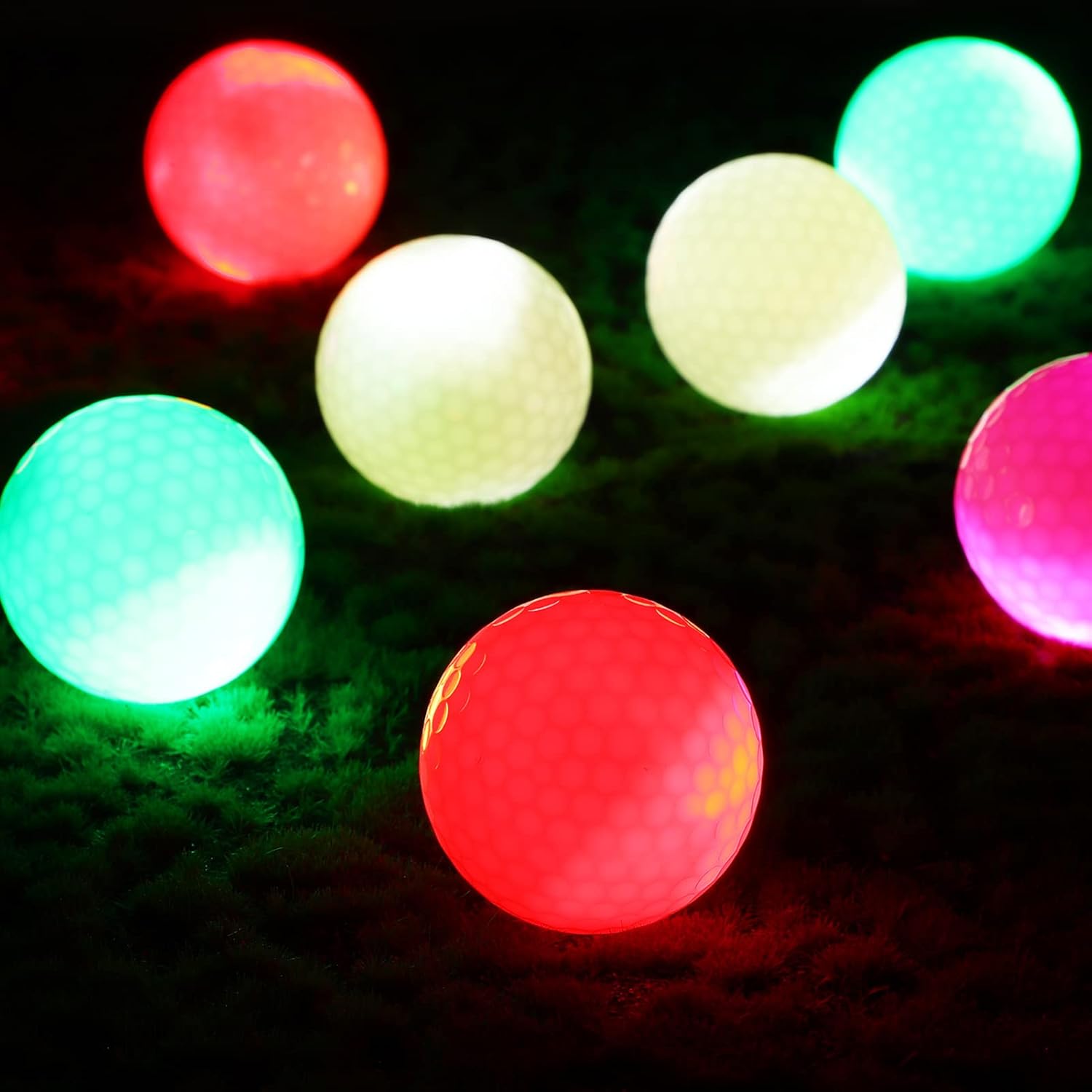 Package List 8 Golf Balls Features -Color:Assorted Color golf game balls -Material: Synthetic rubber golf balls -Size: About 4.50X4.50X4.50cm/1.77X1.77X1.77in golf supplies -LED golf balls are very interesting and provide you with a different golf practice experience practice golf ball. -Practical and LED golf balls, suitable for practice, game, training, etc hitting glowing golf balls. -Just hit and it lights up on impact, forming a colorful arc as it through the air golf balls for distance training. -Suitable for both indoors and outdoors, you can play games with your family with these LED golf balls sports balls. -Easy to find when golfing at night, and your friends have more fun flashing golf balls.Goods Informationgolf game balls Just hit and it lights up on impact, forming a colorful arc as it through the air.night golf balls Our product is a set of unique glowing golf balls.sports balls So bright it's fun to play at night.golf supplies LED golf balls are very interesting and provide you with a different golf practice experience