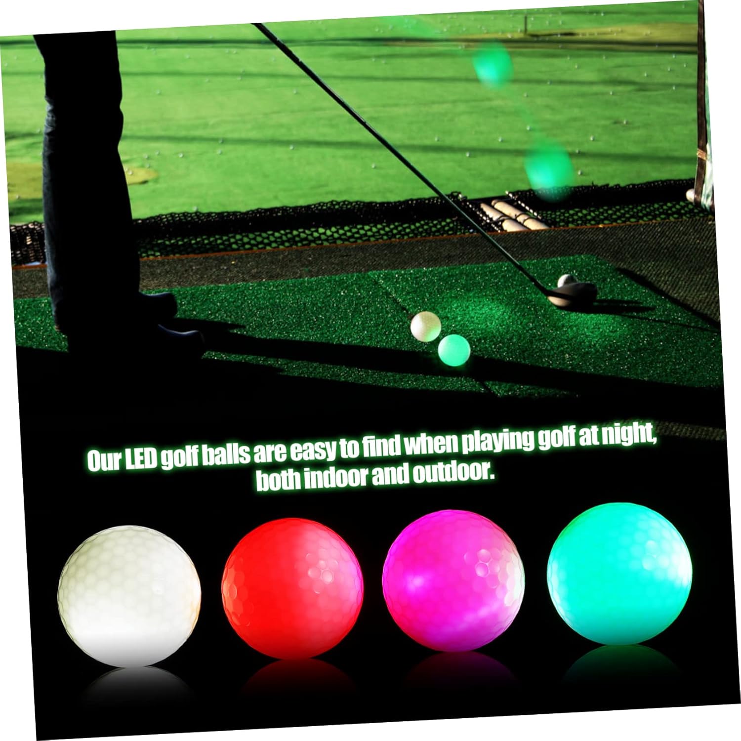 Package Include 8 Golf Balls Features -Color:Assorted Color glowing golf balls -Size: About 4.50X4.50X4.50cm/1.77X1.77X1.77in night golf balls -Material: Synthetic rubber golf balls for distance training -The glowing LED golf ball adds more fun to the game, allowing you to have a fun experience golf training balls. -These golf balls are also convenient for nighttime play or practice thanks to their glowing features LED golf balls. -These golf balls are suitable for who are just learning to play, maybe games, training, etc golf balls for game. flashing golf balls -The fun LED golf ball helps you enjoy your golf game or training ball. -Hit with your swing and it will light up, with each ball having its own color as it lights up golf ball for practice.Goods Informationsports balls Help you having fun in golf games or training better.golf balls for game Unique glowing design hit the golf ball with your swing and it will light up, each ball has its own color when it lights supplies Are you looking for professional and functional golf balls? If yes, your search can stop here! Because our products can fully meet your needs
