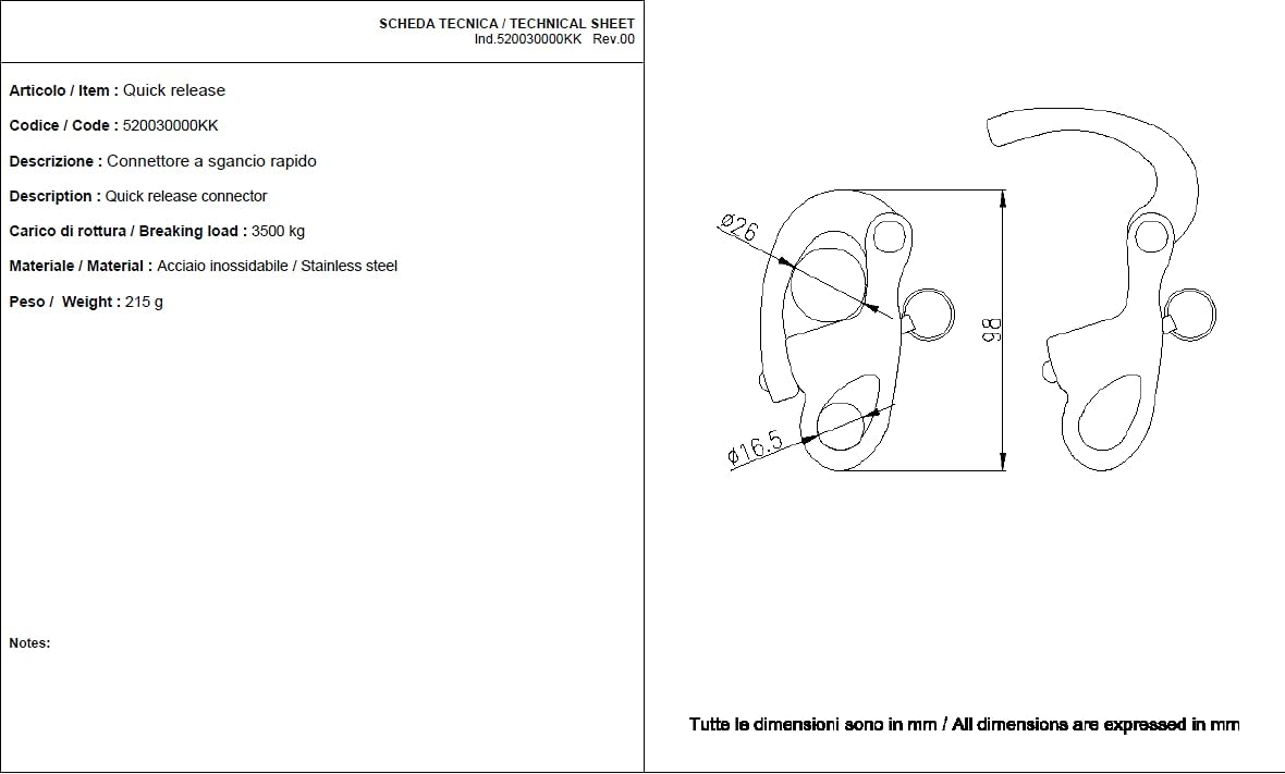 Stainless steel AISI 316 quick release, useful in all situations where you may need to quickly disengage from the attachment point (water skiing, longe positioning, etc ...) It is sufficient to pull the ring to quickly open the closing lever, even under load.