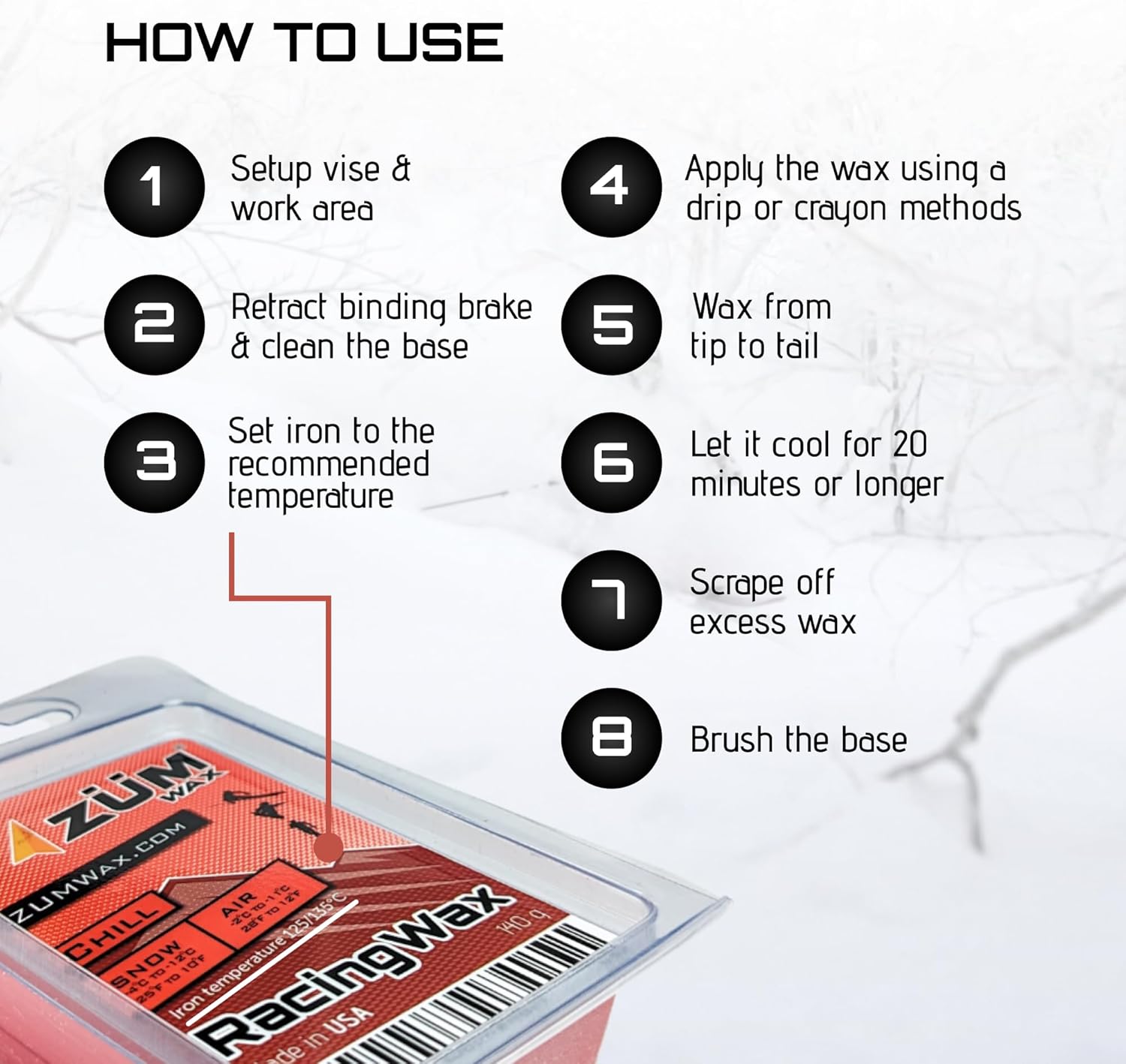 • COLD Wax: Air temperature Range: -9°C to -30°C or 16°F to -22°F / Snow temperature Range: -10°C to -30°C or 14°F to -22°F