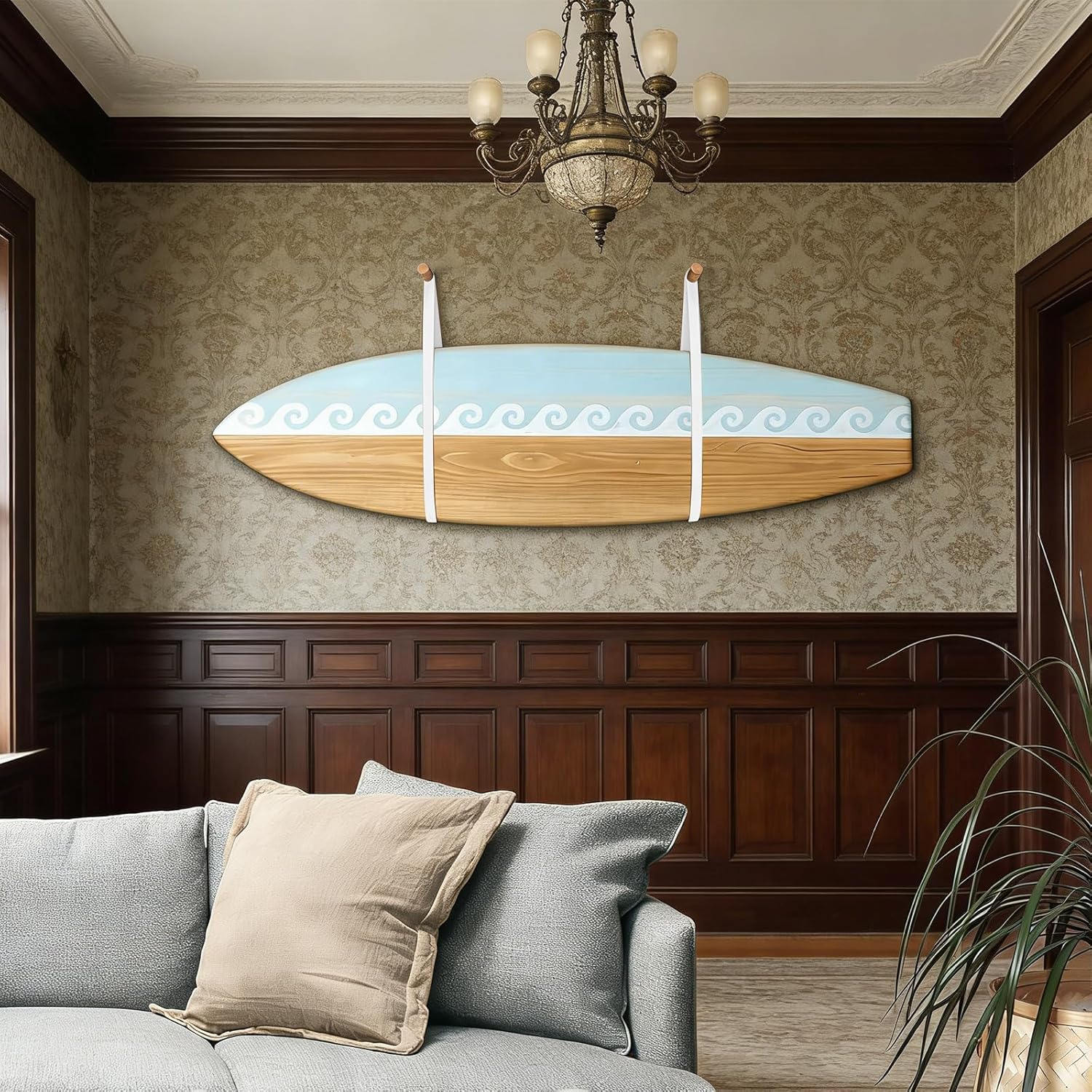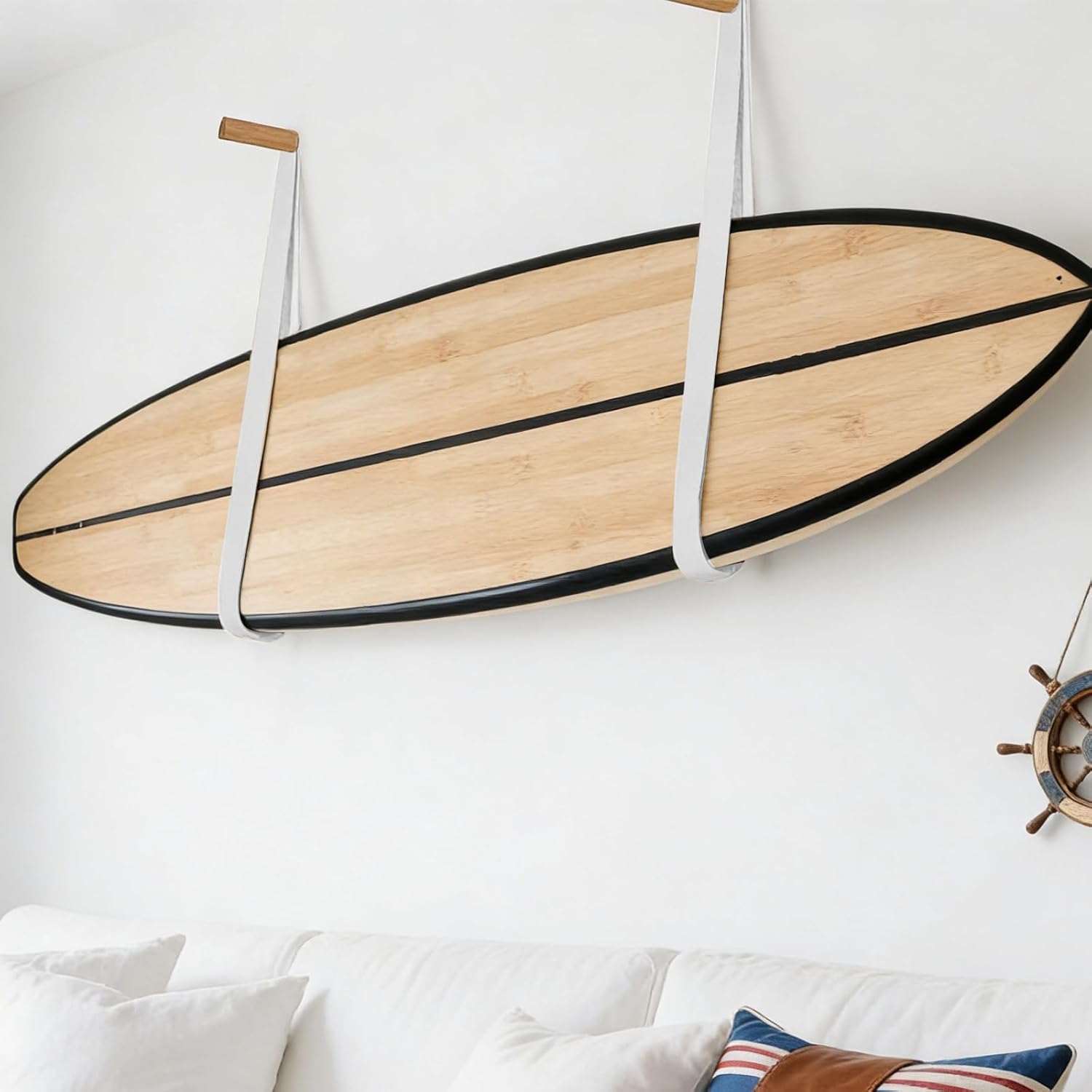Surfboard Wall Mount, Surf Board Wall Hangers, Surfboard Rack, Beautiful Sustainable Wood & Leather Rack, Hanging Indoor Storage for Any Surf Board, Surfing Accessories, Easy Installation