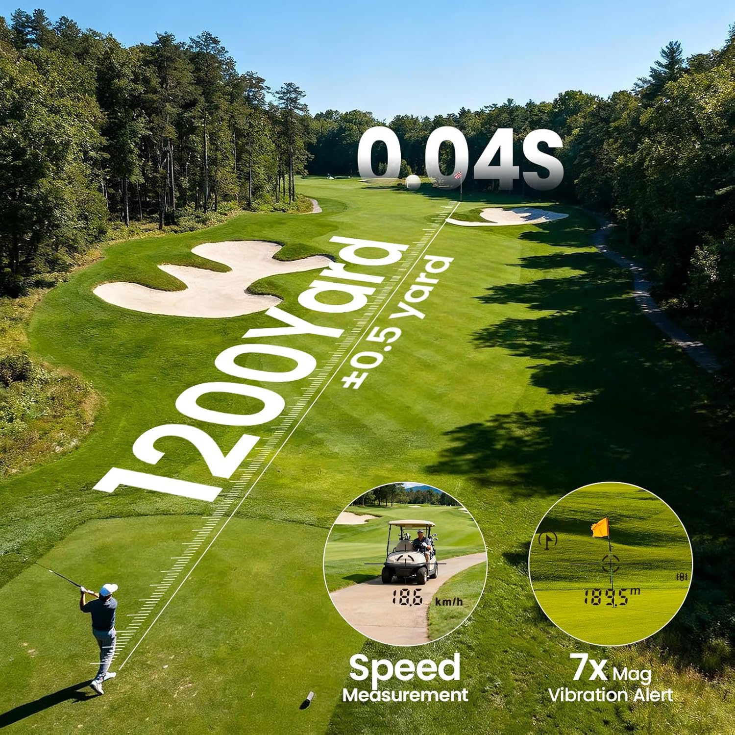 EENOUR Golf Range Finder with Slope, 1200 Yards Golf Rangefinder, Laser Rangefinders with Magnet and Pin Lock Vibration, 7X Magnification, Rechargeable Compact Portable Range Finder Golfing