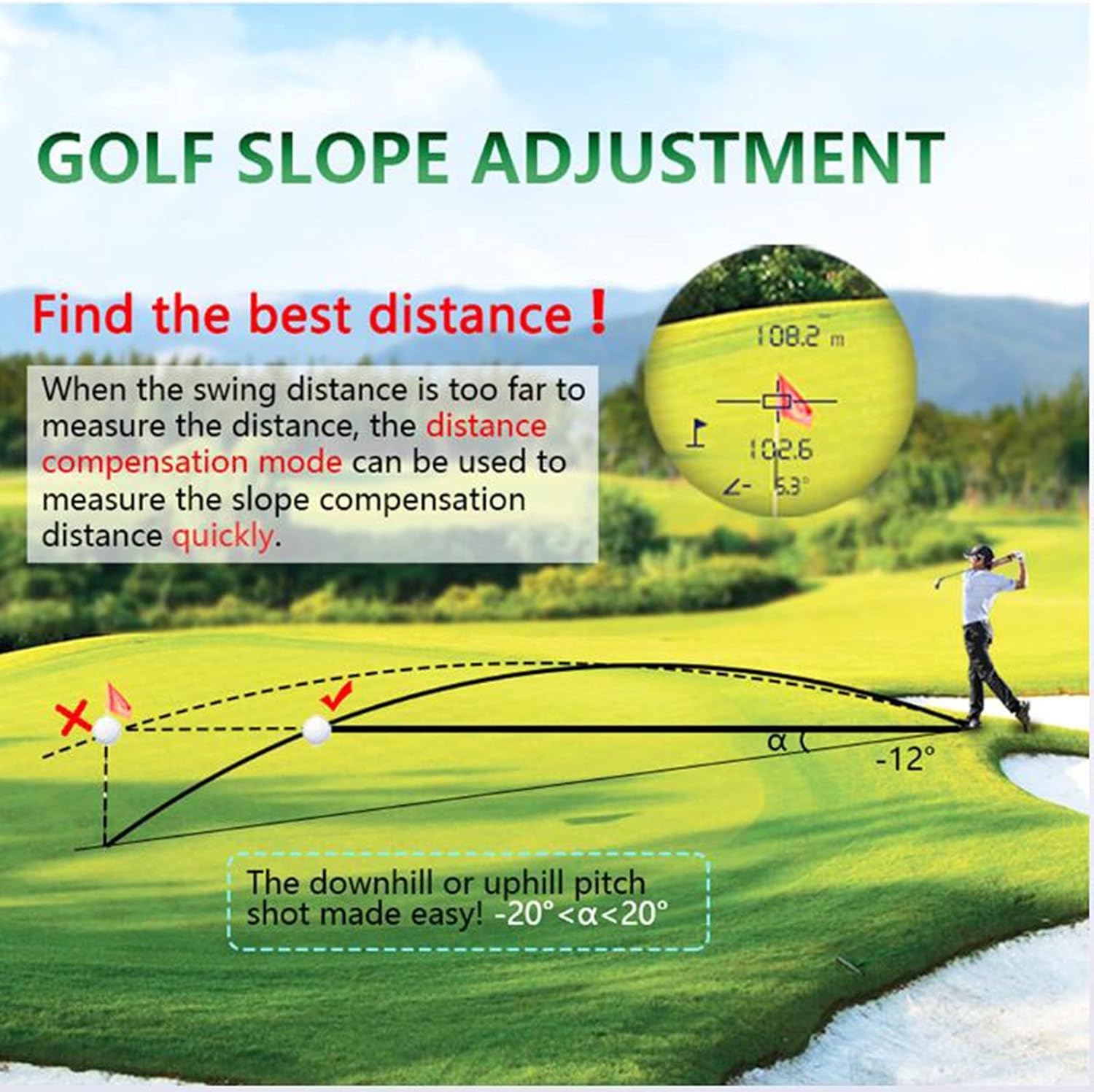 One of the hardest things to measure when you are new to the game is distance. In fact, all of us have trouble measuring distances, and the golf rangefinder excludes all these guesses from the game. Ergonomic design, light weight, ergonomic design and light weight make it easier for golfers to hold because they can be better wrapped with soft, non-slip materials (ABS + PP). Your rangefinder is easy to carry, no golf bag can be carried, waterproof, suitable for golf, hunting, mountaineering. parameter: Magnification: 6x Objective lens diameter: 20mm Diameter of transmitting lens: 8mm Receiving lens diameter: 23mm Field of view (feet 100 yards): 7 Eyepiece diameter: 16.3mm Exit pupil: 3.33mm Ranging range: 5-800Y Range of flag measurement: 5-230Y Measurement accuracy: ±1 Screen: LCD Battery: CR2 Packing: 1 x laser rangefinder 1 x glasses cloth 1 x carrying bag 1 x user manual 1 x packing box