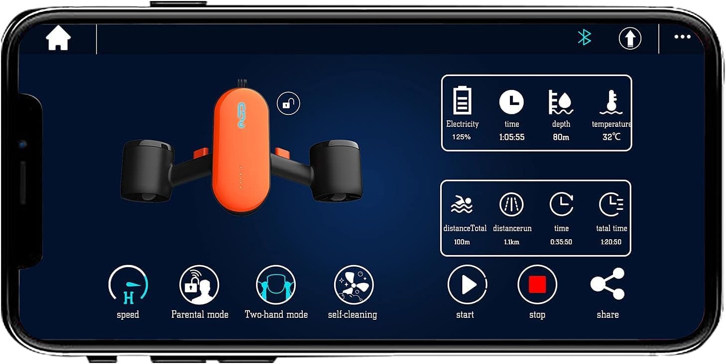 Elevate your underwater explorations with the Geneinno S2 Underwater Scooter—an elite sea scooter crafted exclusively for adult adventurers, redefining how you experience snorkeling, diving, and marine discovery! This underwater scooter for adults fast features a sleek, travel-friendly build at just 2.7kg with laptop-sized dimensions (500270148mm), paired with a high-performance dual-motor system that generates a 10kg maximum thrust and a top speed of 4.32km/h (2.7mph), ensuring smooth, effortless gliding through both freshwater and seawater environments. Built for deep-sea adventure, this premium underwater scooter for adults boasts an impressive 30m (100ft) maximum depth rating and a high-capacity 97.68Wh lithium-ion polymer battery (4400mAh/22.2V) that delivers up to 45 minutes of non-stop runtime—ideal for extended underwater expeditions. Best of all, the battery is airline-approved, making these water toys the perfect travel companion for your next beach, reef, or tropical diving getaway. Seamlessly blend cutting-edge tech with underwater performance via wireless APP control, compatible with iOS 9.0 and Android 4.4 or higher. Link your sea scooter to the Geneinno App to access real-time device metrics including battery level, speed, sailing distance and time, toggle between two adjustable speed gears (low/high), activate the convenient self-cleaning mode, customize light effects, and share your incredible underwater adventures directly to social media platforms. The App also includes a one-click safety lock and firmware upgrade notifications for enhanced safety and functionality. Designed for ultimate versatility, this fast underwater scooter for adults comes with an integrated Action camera mount that supports Action camera with matching connectors, so you can capture crisp, stunning underwater footage of every dive and snorkel trip. Built to last and simple to maintain, the Geneinno S2 sea scooter requires just a fresh water rinse and activated self-cleaning mode post-use to prevent salt crystallization, preserving its performance for years to come. The official fast charger delivers a full charge in just 1.5-2 hours—simply charge in a dry, well-ventilated area for optimal results. This underwater scooter also supports a range of external accessories including balance weights, buoyancy materials, and auxiliary lights, letting you customize your gear for any underwater adventure. Whether you’re exploring vibrant coral reefs, gliding through calm bays, or diving into underwater caves, the Geneinno S2 is the ultimate water toy for unforgettable adult underwater experiences! Key Features 1.High-Power Dual Motor System – This underwater scooter for adults fast is equipped with dual high-efficiency motors that produce 10kg max thrust and a 4.32km/h top speed, enabling seamless, effortless movement through freshwater and seawater for premium marine exploration. 2.Deep Dive & Long-Lasting Battery – The airline-approved 97.68Wh Li-ion polymer battery offers up to 45 minutes of runtime, with a 30m (100ft) max depth rating; the official charger provides a full charge in just 1.5-2 hours for non-stop adventure. 3.Wireless Smart APP Control – Connect the sea scooter to the Geneinno App for real-time battery, speed and sailing data, 2-speed gear switching, one-click safety lock, self-cleaning mode, and direct social media sharing of your underwater journeys. 4.Action camera Compatible Mount – The integrated action camera mount fits Action camera, so you can capture stunning high-definition underwater footage of all your snorkeling and diving adventures. 5.Compact, Durable & Travel-Ready – Weighing only 2.7kg with a space-saving design, this portable water toy is easy to carry and store; it features rugged construction, propeller guards, and LED low-battery alerts for safe, long-term use.