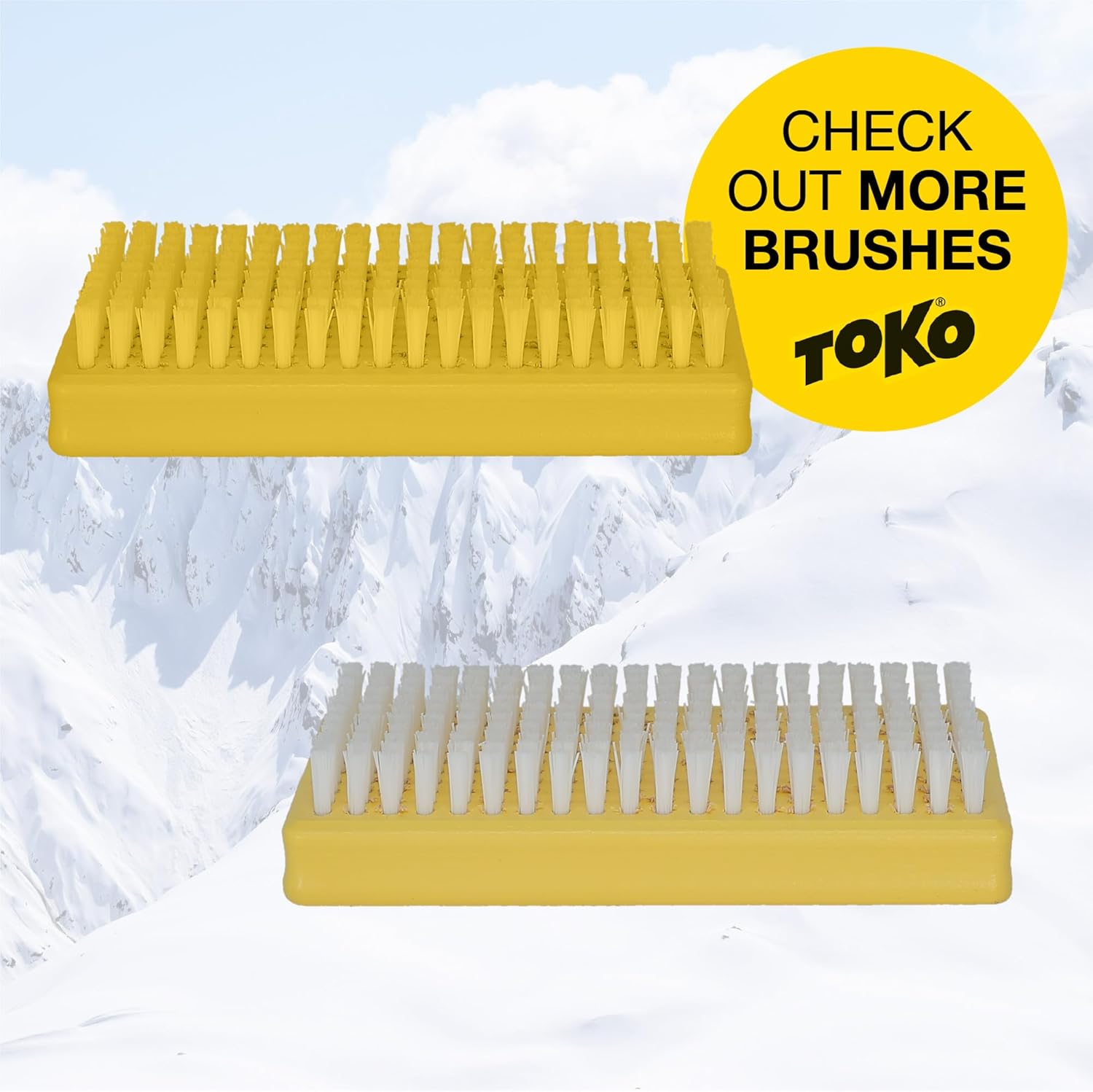 Ensure peak performance on the slopes with the TOKO Ski Snowboard Waxing Brush – a must-have for your winter sports gear maintenance. Perfect for tuning your equipment, the precision steel wire brush is designed for cleaning out old, dirty wax and opening up the porous base for new wax application. With bristles measuring 10mm in length, this brush guarantees efficient and thorough cleaning. The roto ski brush makes things quick and easy. Whether preparing your gear before waxing or finishing with a post-scraping touch, this brush ensures a smooth glide on the snow. Rely on TOKO's dependability and commitment to quality for your ski or snowboard maintenance – they're high-quality, easy to use, and designed with your safety in mind. Upgrade your gear care routine with the TOKO Ski Snowboard Waxing Brush for a season of optimal performance on the slopes.