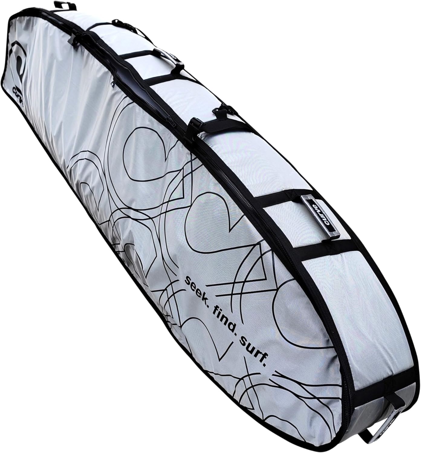 Surfboard Coffin Bag with Wheels - the Mission Travel Multi Wheely Cover 3-4 surfboard bagThe Mission multi travel bag is ready to securely pack your quiver into a 10mm padded coffin of protection, ensuring your boards arrive safe and unscathed.Packed with features this bag is fully detailed with wheels, external compression straps, handles, shoulder strap, internal board straps, and storage pockets. Travel is about reliability, and no corners have been cut in keeping this bag top of the pile with considered design and quality components - premium YKK corrosion-proof zippers, plus Duraflex and YKK buckles are used as standard through-outExternal fabric is premium reflective Aluminum alloy which along with being super durable also resists heat - great peace of mind for when your board gets left out of reach on a baking tropical tarmac! 10mm protective foam core is sandwiched between a durable inner tarpee lining for maximum performanceThere is nothing worse than not being able to easily grapple your board when moving through airports and commuting via transport. so we included 3 massive grab handles meaning there is always a handle for pulling your bag by its wheels, out of a vehicle, from an x-ray conveyor.... or to use as an anchor for a tiedown strapIn-built wheels provide flexibility for travelling through a city and when an airport cart is not available / requires payment. Skid bars have been protected with fabric caps to prevent them peeling away + plastic reinforced skid pad provides extra protection to the base of the bag - all to minimize wear and tear3x padded dividers are adjustable and secure into place via velcro, keeping boards nicely separated2x internal storage pockets - mesh side pocket + stealth nose pocketIf you are doing any kind of mission this is your bag - whether medium haul, global trip or a strike mission when the swell is on - the Mission has been designed to get your boards their easy and safeAvailable in 3-4 board size, length choose from 6'6 or 7'0