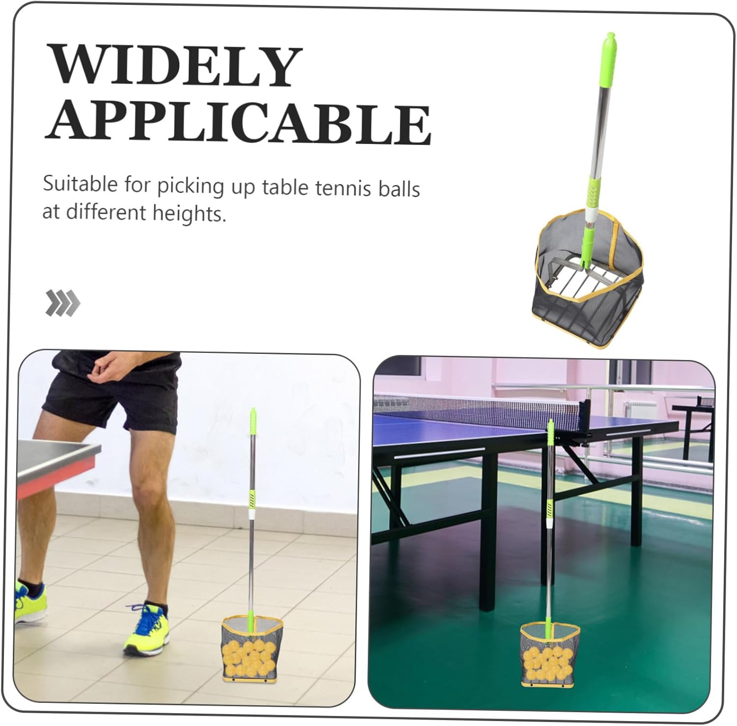 Package Include 1 x Table Tennis Ball Picker Features -Efficient ball collection saves : effective ball retrieval system helps to save portable ball picker -Color:Multi tennis balls basket -Robust construction ensures use: sturdy build ensures the product's durability and longevity table tennis collector -Extendable design for use at different heights: adjustable height feature enables the use of the product at various levels table tennis ball collector -Size:88.00X20.00X20.00cm/34.58X7.86X7.86in long handle ball picker -Material:stainless steel, ABS small balls picker -Size:56.00X20.00X20.00cm/22.01X7.86X7.86in portable picker -Also work as a ball machine: picking function also serves as a ball dispenser convenient balls picker -Portable and easy to store: convenient and space-saving design allows for easy transportation and storage large capacity balls pickerGoods Descriptiontable tennis ball catcher Its firm construction ensures use, making it a great accessory table tennis player.ball picker outdoor This portable and extendable table tennis ball picker is a must-have table tennis enthusiast.table tennis picker Its efficient design saves , making it easy to collect balls without having to bend down.table tennis accessories The extendable feature allows for use at different heights, making it suitable for players of all ages and skill levels