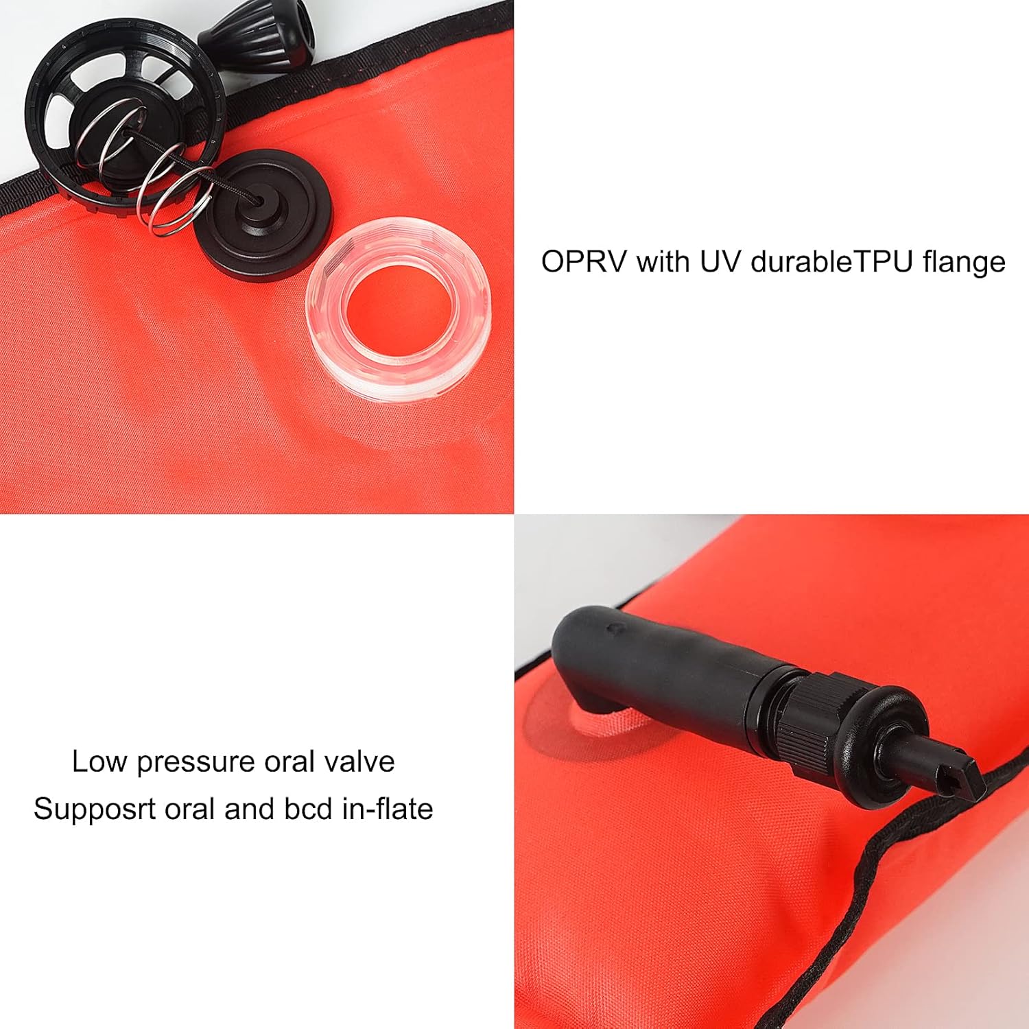 Luwint Scuba Diving Inflatable Safety Tube Sausage Signal Marker Buoy, 4ft/5ft/6ft Tall x 7in Width, Hi-Vi Orange Luwint Delayed Surface Marker Buoy has a reflective strip at the top on both sides and a handy plastic D-ring to hang a light for dark use visibility. The bottom of the SMB is open for inflation from a your octo, or you can manually inflate from the spring-loaded stem.It comes with an over-pressure valve which is also used for deflating once you’re back onboard the dive boat and ready to wrap it up. Heavy lead at the bottom to keep the pole safety flag stand straight in the ocean.